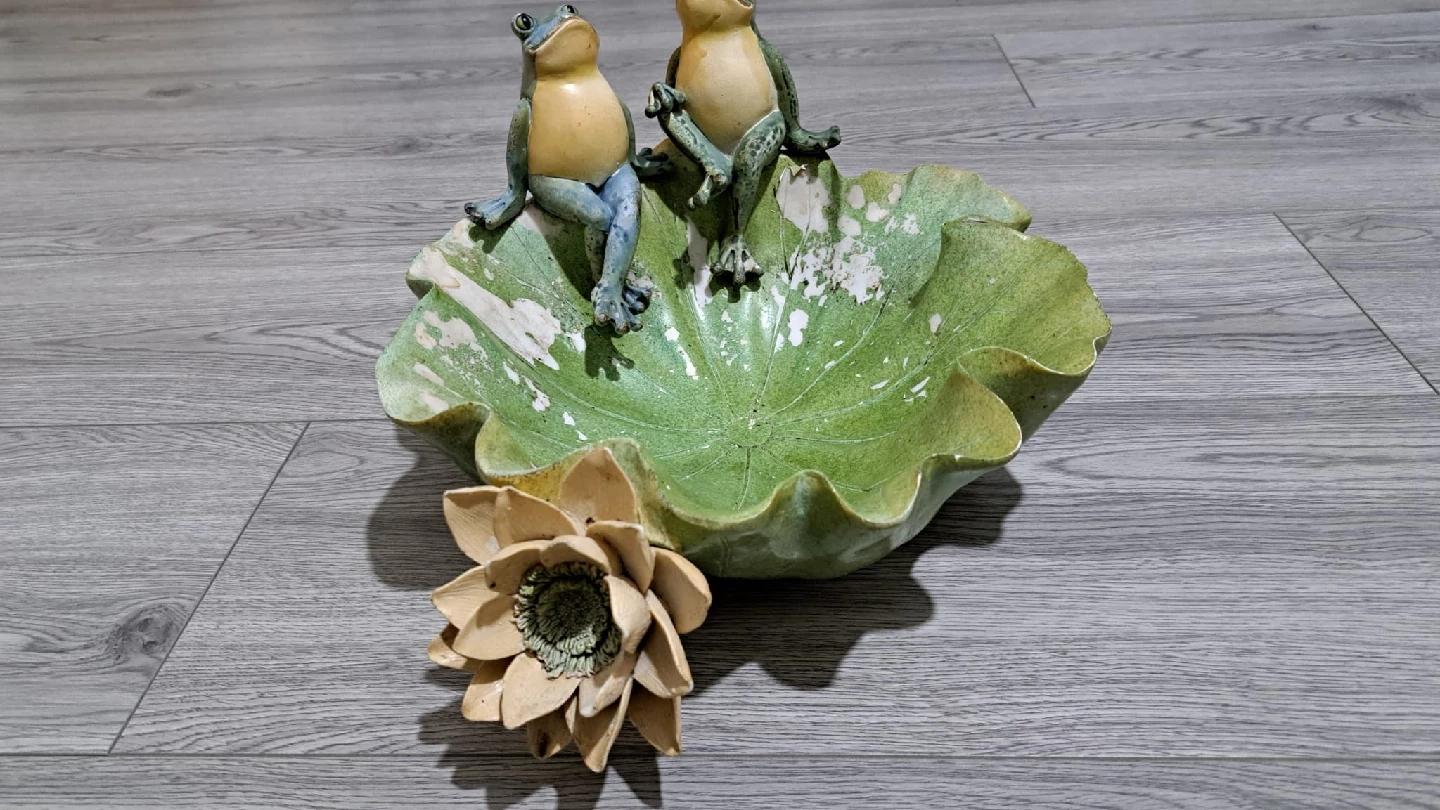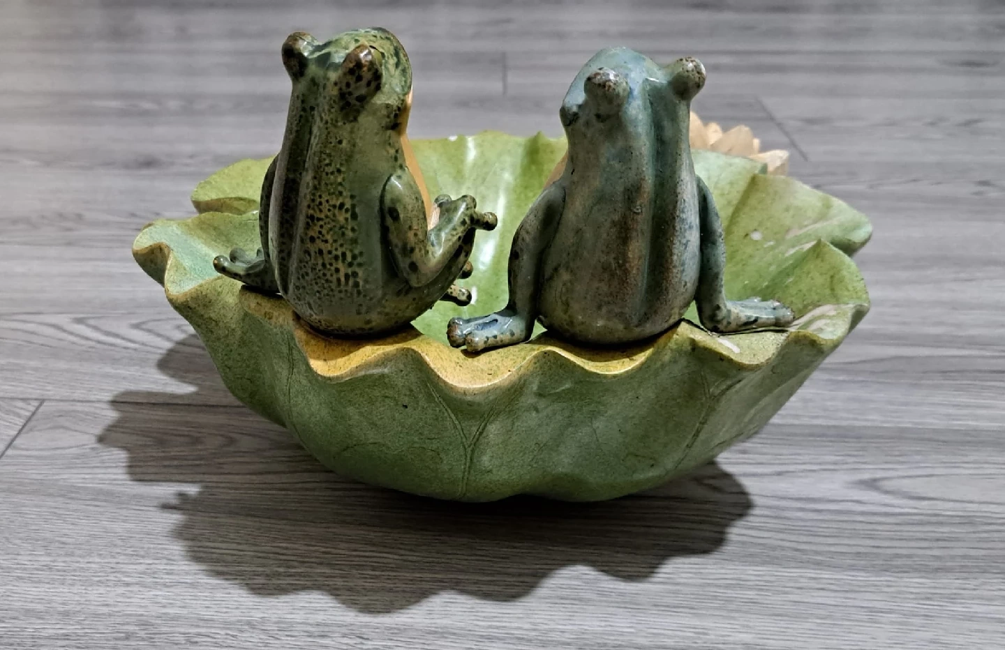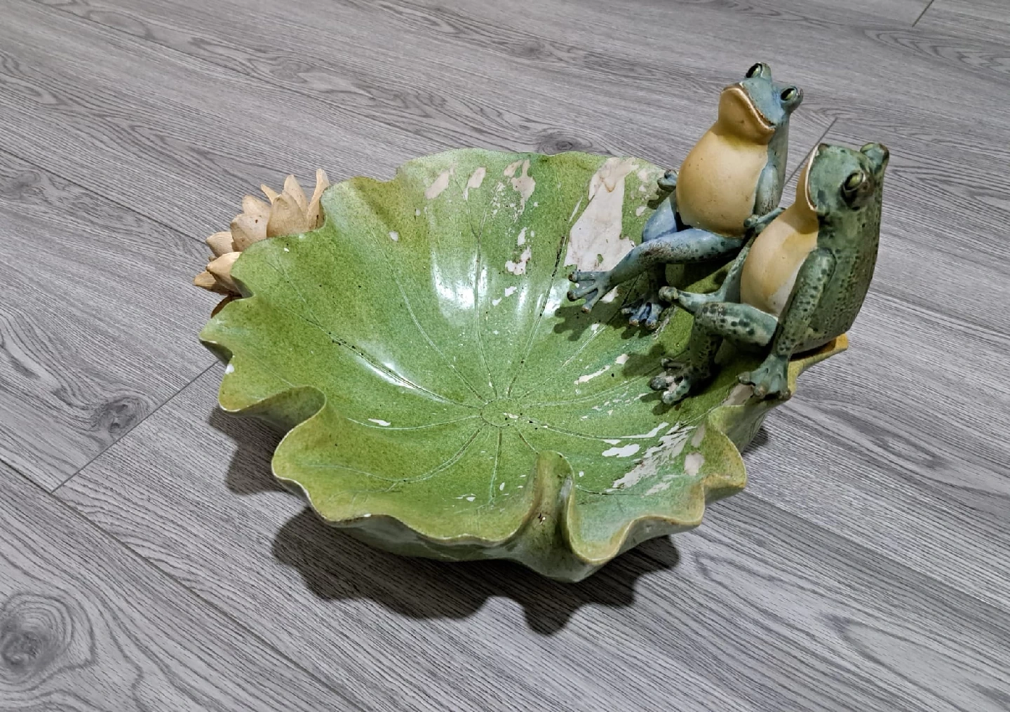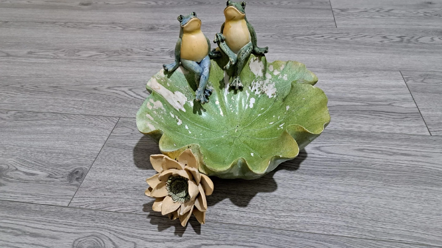 0 reviewsDecorative piece Two Frogs On A Lily Pad" by Lowell Davis, This garden decoration piece has a little paint damage, as seen in the pictures. But otherwise, it's completely fine, no cracks.