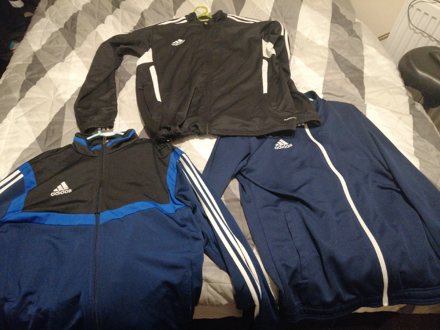 0 reviewsSelling a bundle of Adidas track jackets. There's a black one, and two blue ones. All in good condition!