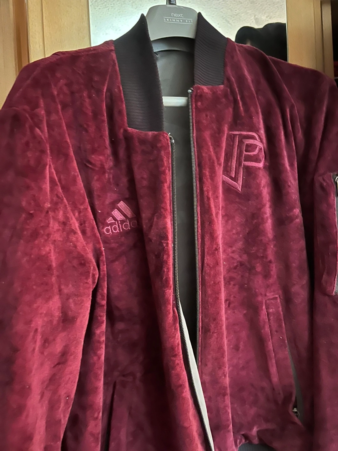 4 reviewsAdidas x Palace bomber jackets. Reversible burgundy velour / grey. Both feature Palace branding.Excellent condition.Size medium men’s.