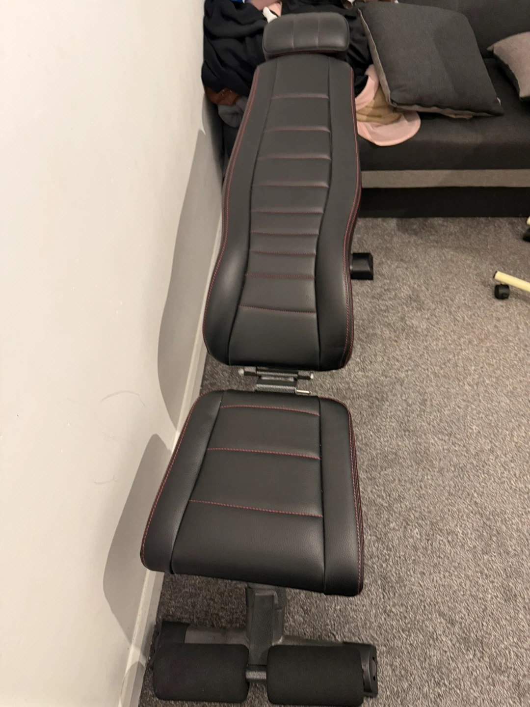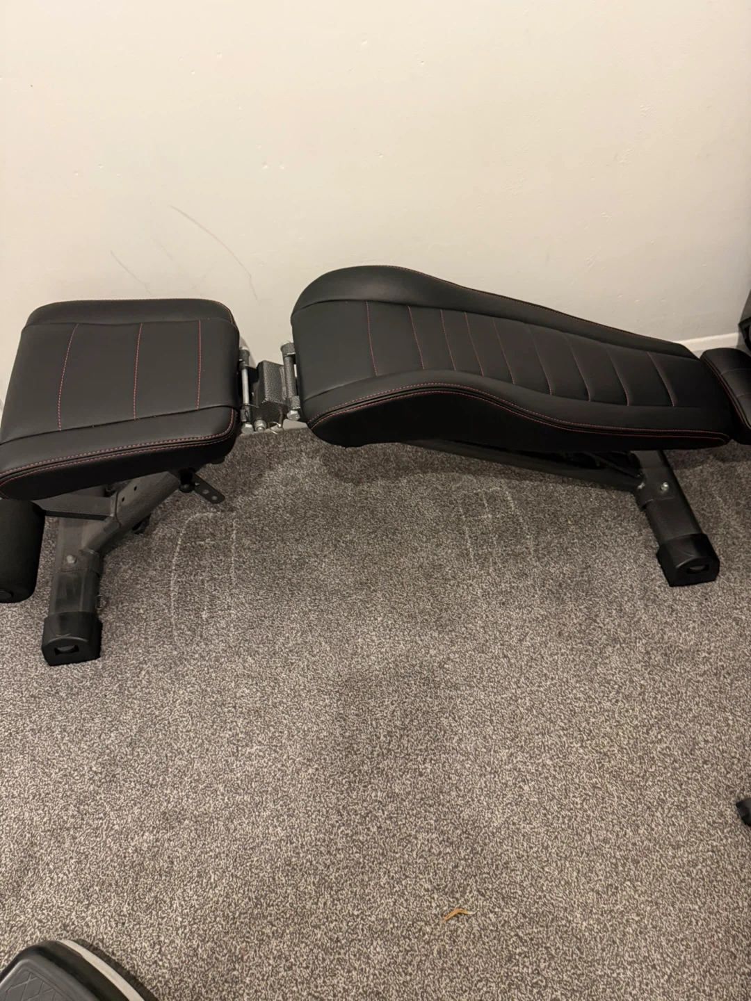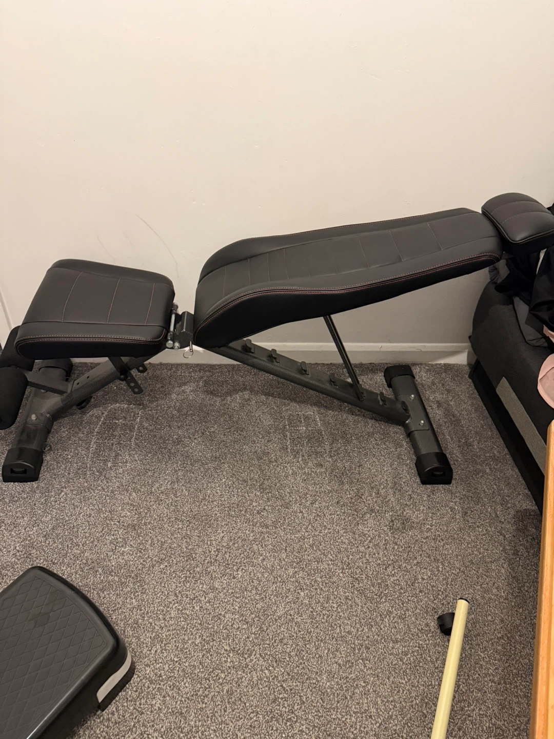 Show allAdjustable weight bench in black. Perfect for home workouts and strength training. It's in very good condition and ready for a new home!