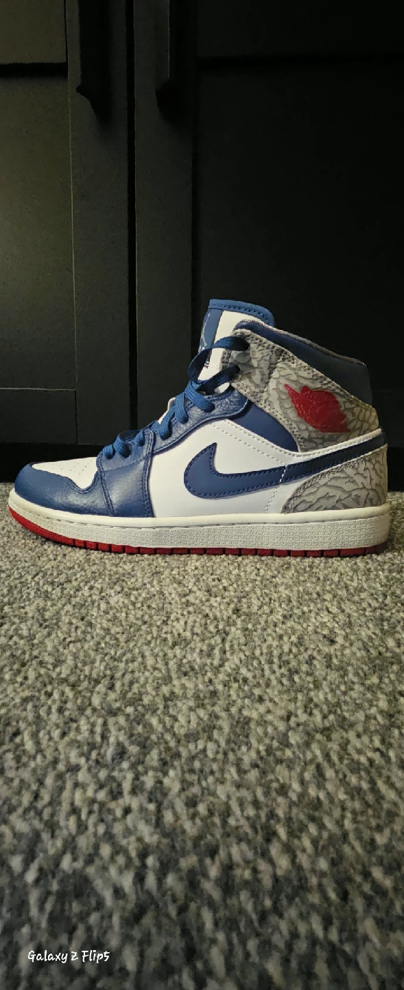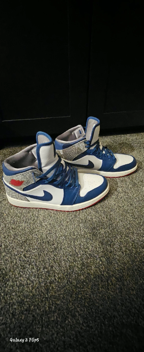 18 reviewsUp for grabs is a pair of Air Jordan 1 Mid SE trainers in the 'True Blue' colourway. They feature that iconic Jumpman logo and a cool elephant print detail. They're in great condition and would look fab on anyone! These are a steal to anyone who buys... Excellent 👌🏼 condition
