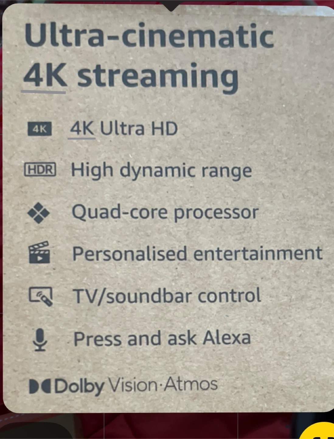 13 reviewsSelling a brand new Amazon Fire TV Stick 4K. It supports ultra-cinematic 4K streaming with high dynamic range. Key features include: - Quad-core processor - Personalised entertainment - TV/soundbar control - Press and ask Alexa - Dolby Vision Atmos It includes the Fire TV Stick 4K (2nd generation), Alexa Voice Remote, 2 AAA batteries, power adaptor, power cable and HDMI extender cable. Needs high-speed internet with Wi-Fi and a TV with an HDMI port. Box included (Amazon fire tv stick 4k 8 GB Wi-Fi 6 new sealed in box collection from b12