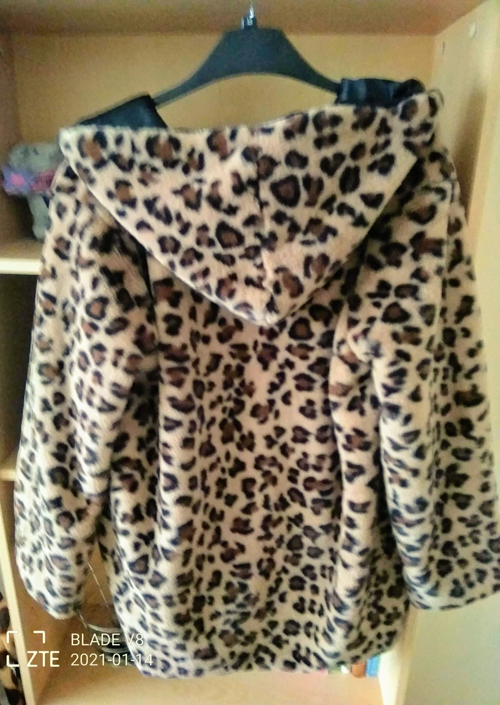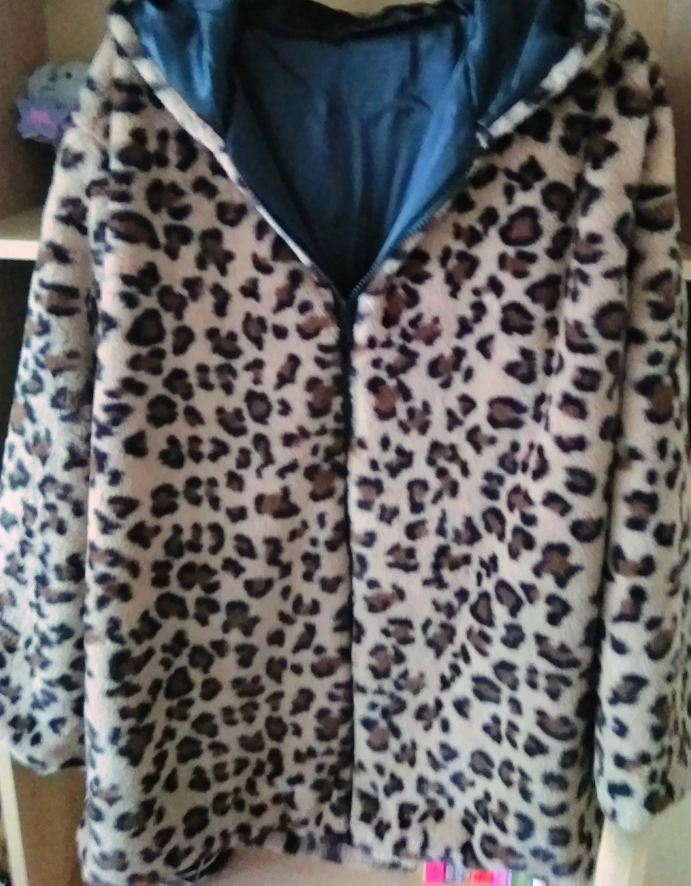 New unworn faux fur animal print jacket in brown. Fully lined with two side pockets. zip on front and hood. size large size12 to 14.Eastleigh area.