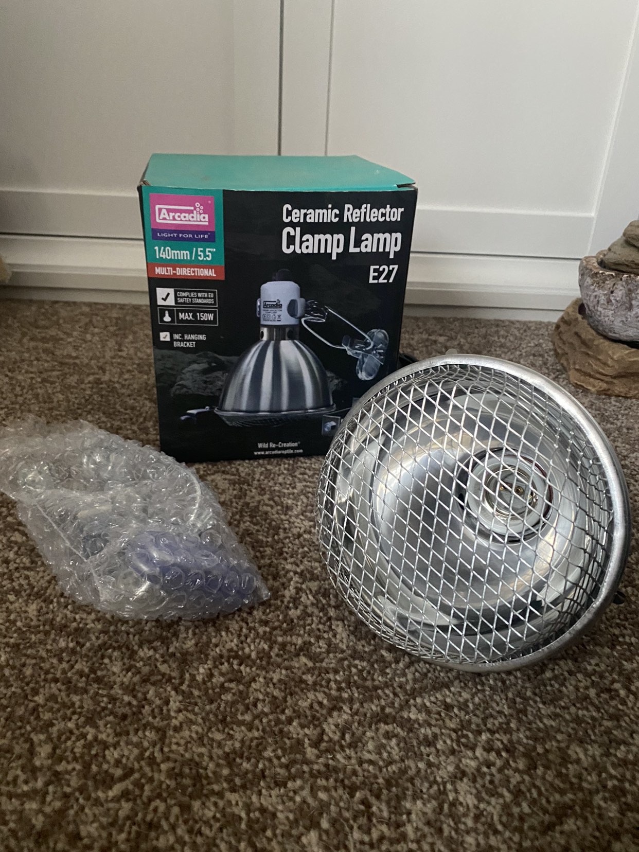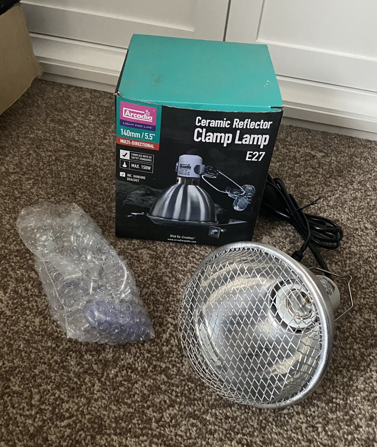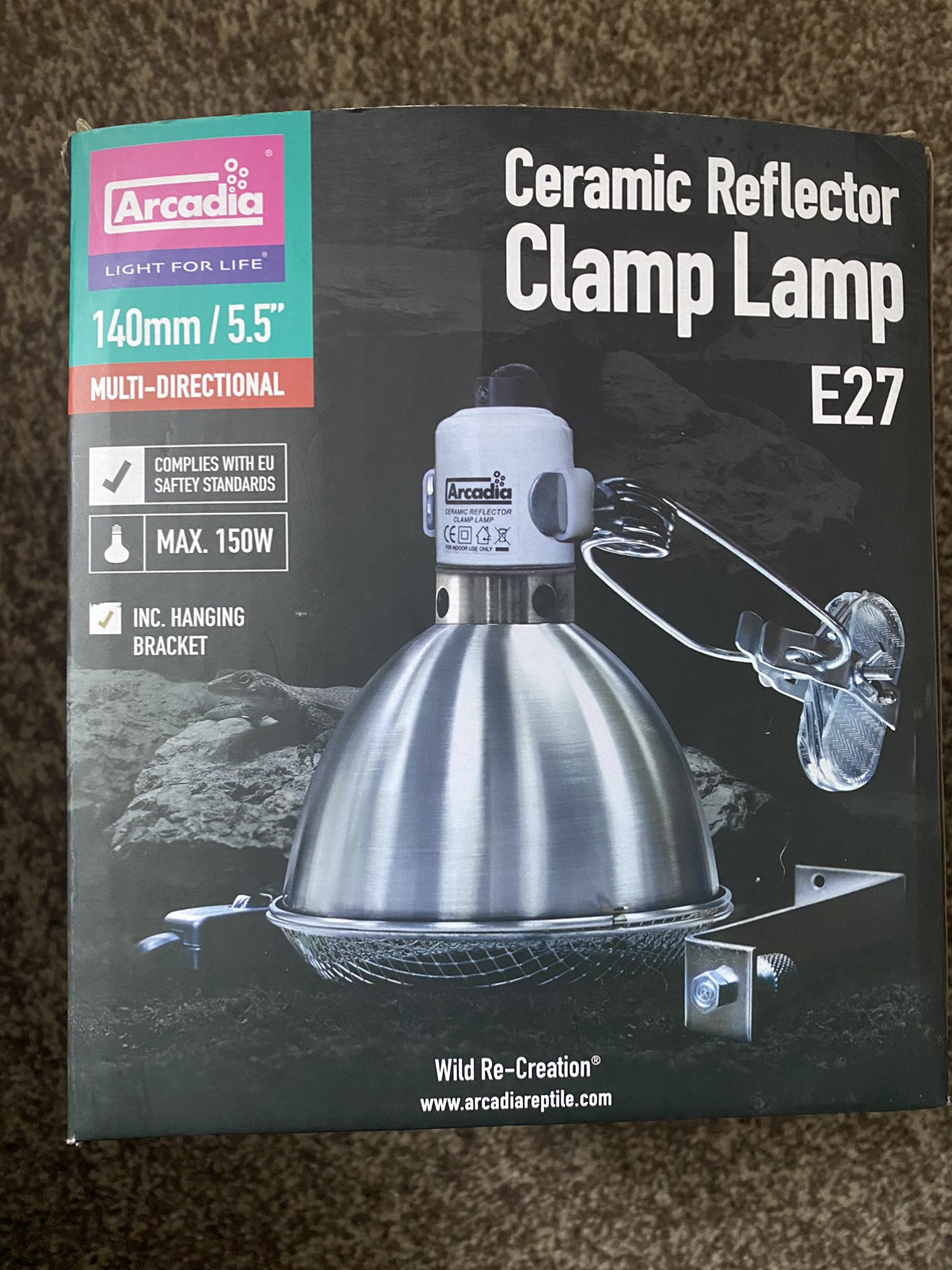 4 reviewsBrand-new in box, Arcadia ceramic heat reflector. This is a ceramic heat dome that can either be hung or it comes with a clamp kit. There is a in-line switch on the cable and removable mesh guard.