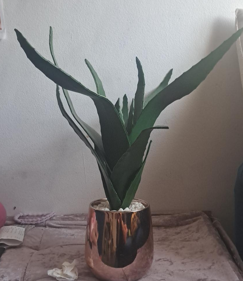 1 reviewHere's a lovely artificial snake plant potted in a stylish rose gold pot. It would make a great addition to any room needing a touch of greenery without the hassle of watering!