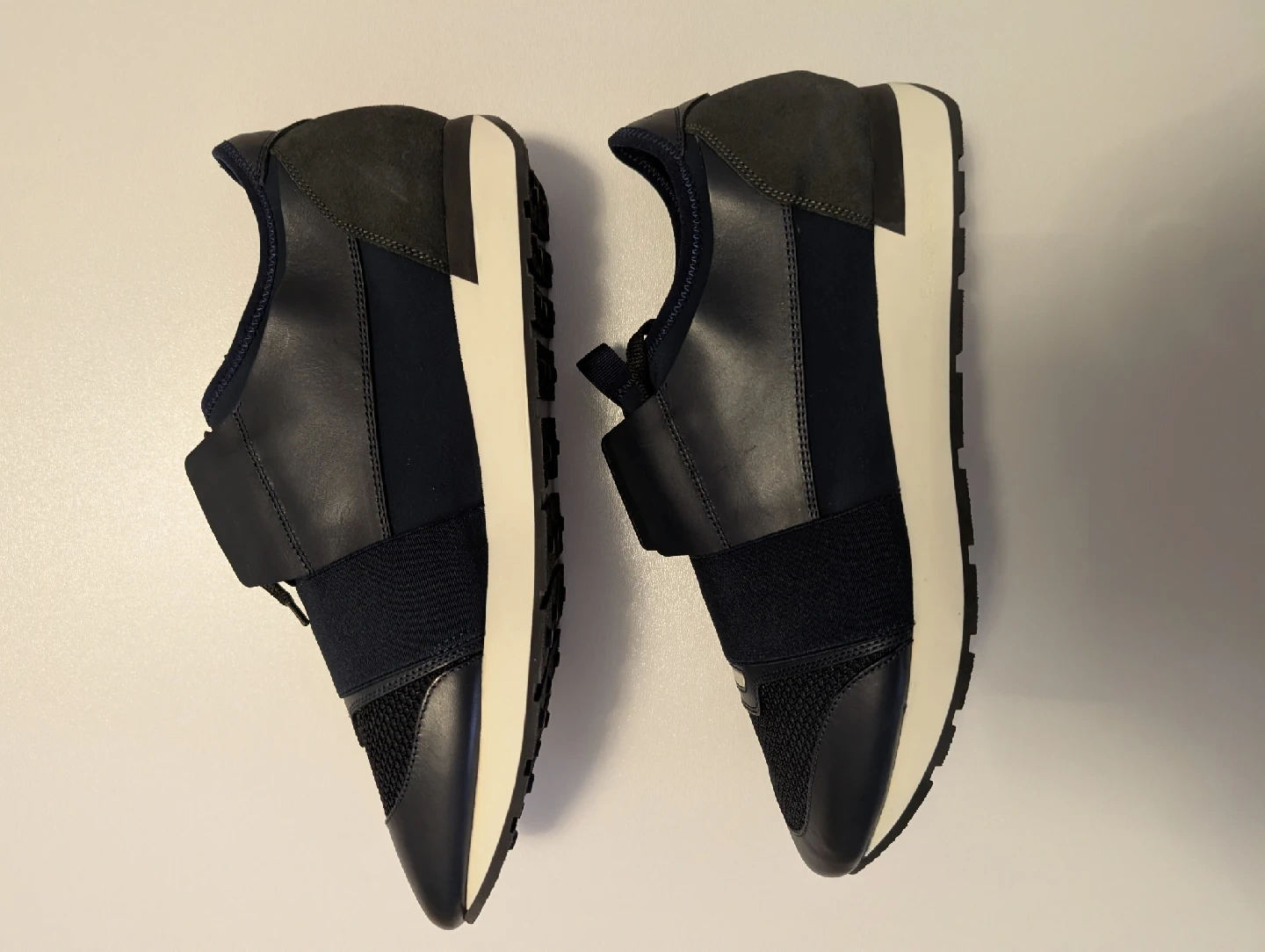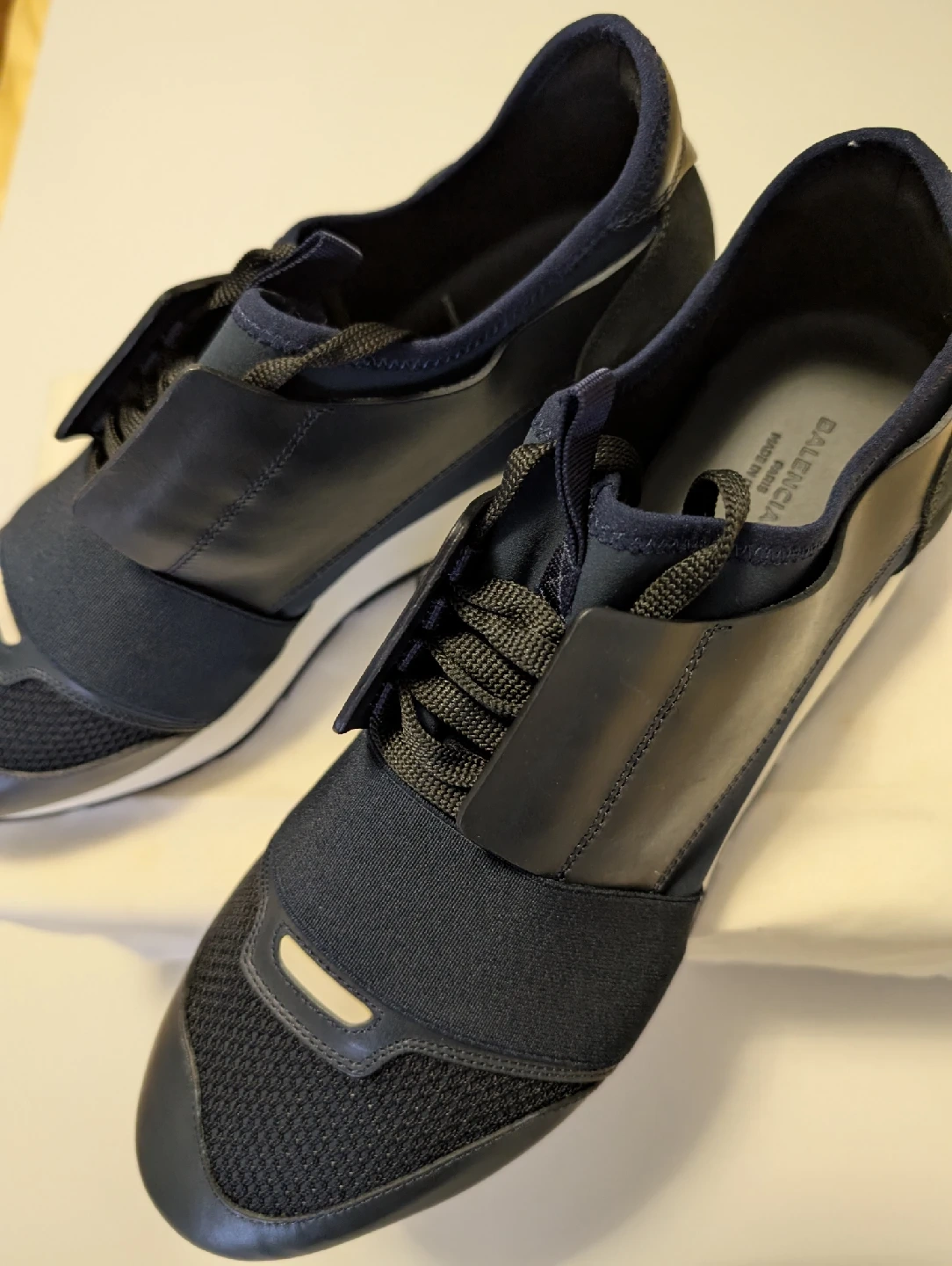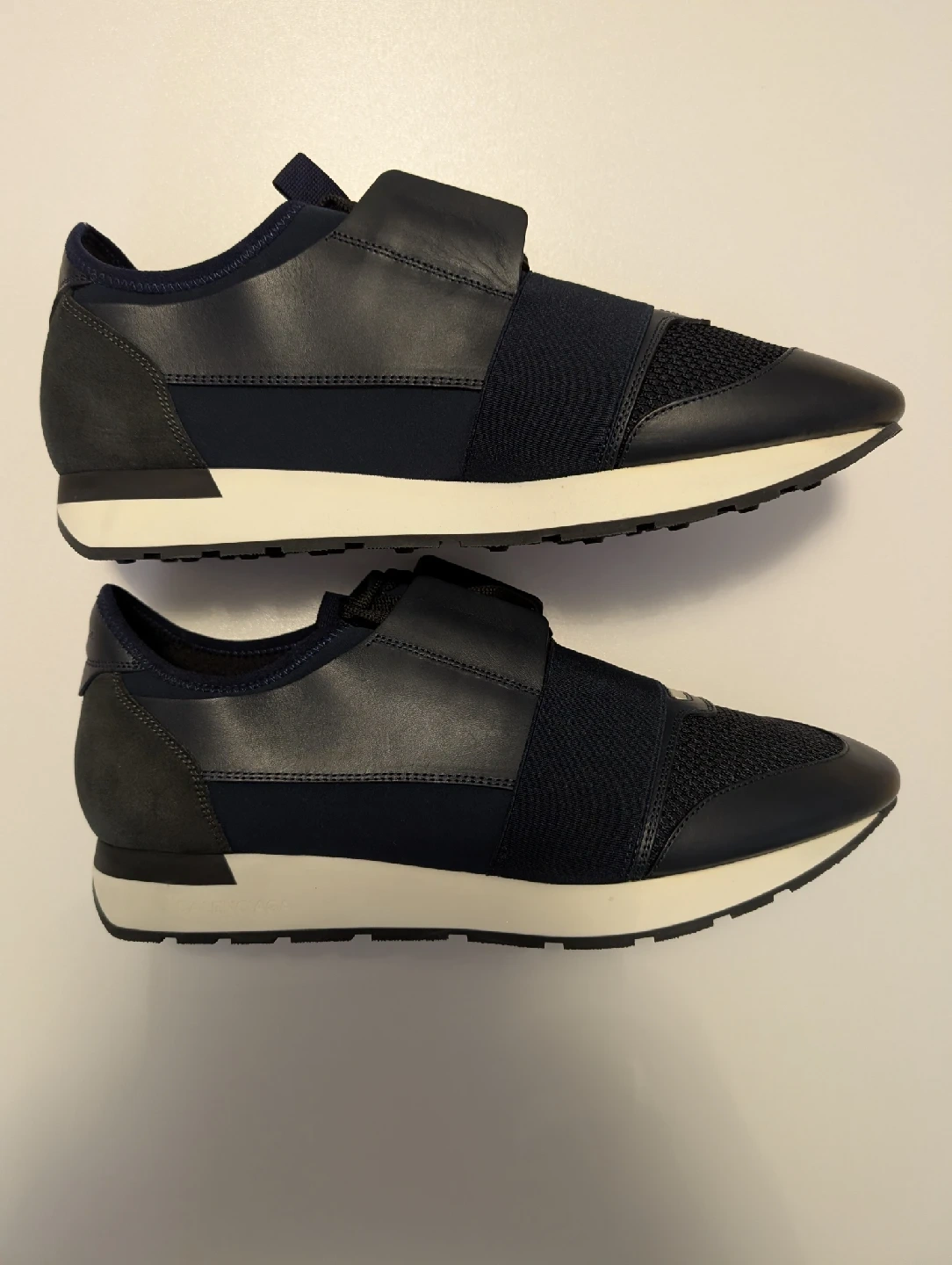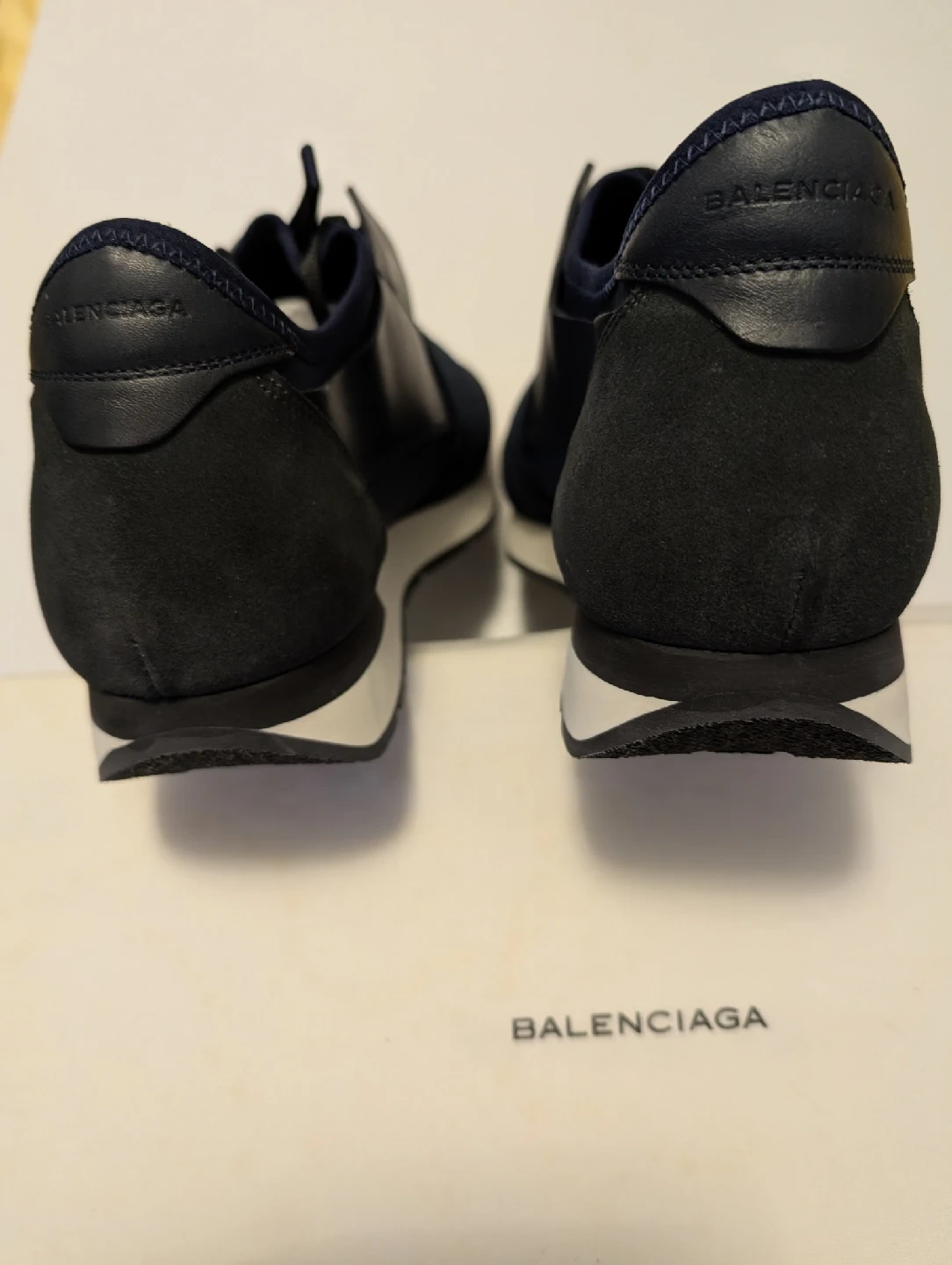 0 reviewsBalenciaga Runner trainers in a dark blue colour. These trainers are a UK size 10, which is a 44 in European sizing. The soles say "Made in Italy"