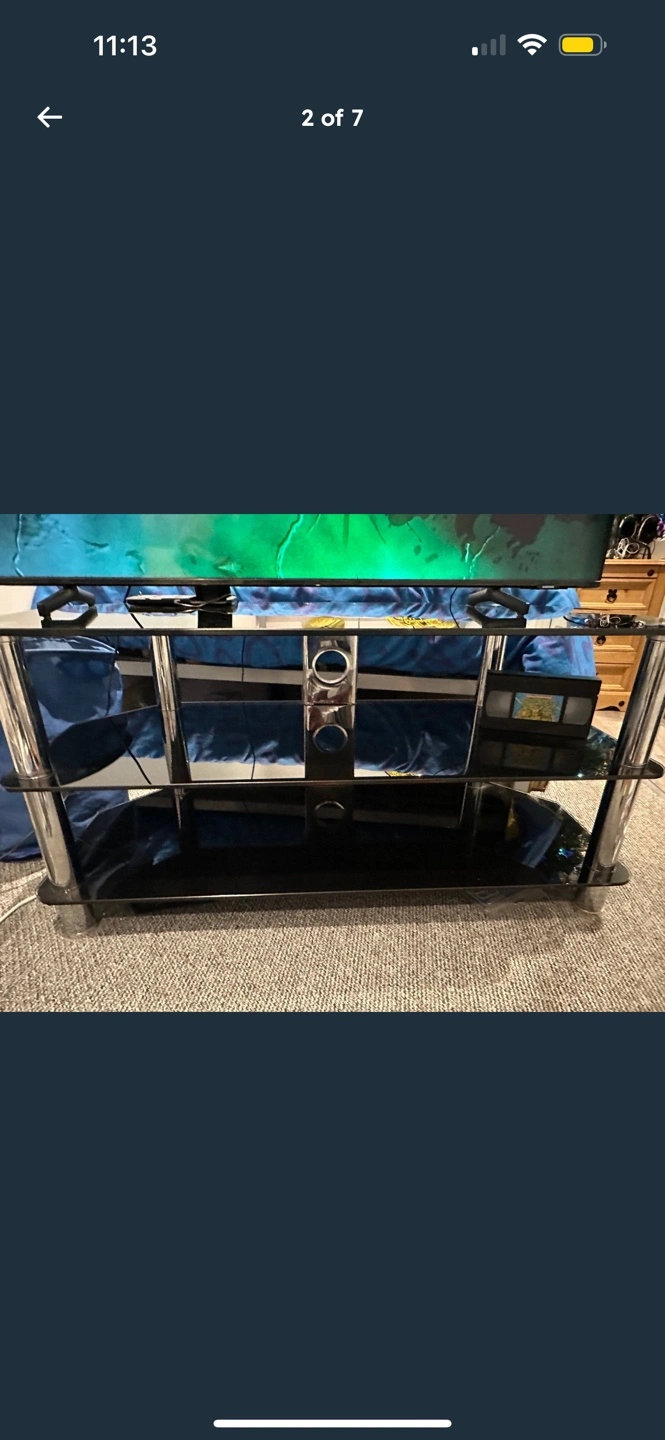 1 reviewGreat condition no scratches and cones from a smoke pet and Covid free home! The length is 105cm The width is 45cm and fits my 50” TV if that helps visualise. Buyer will have to collect and cash on collection please 🙏🏻