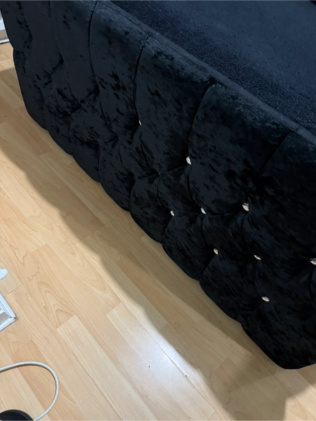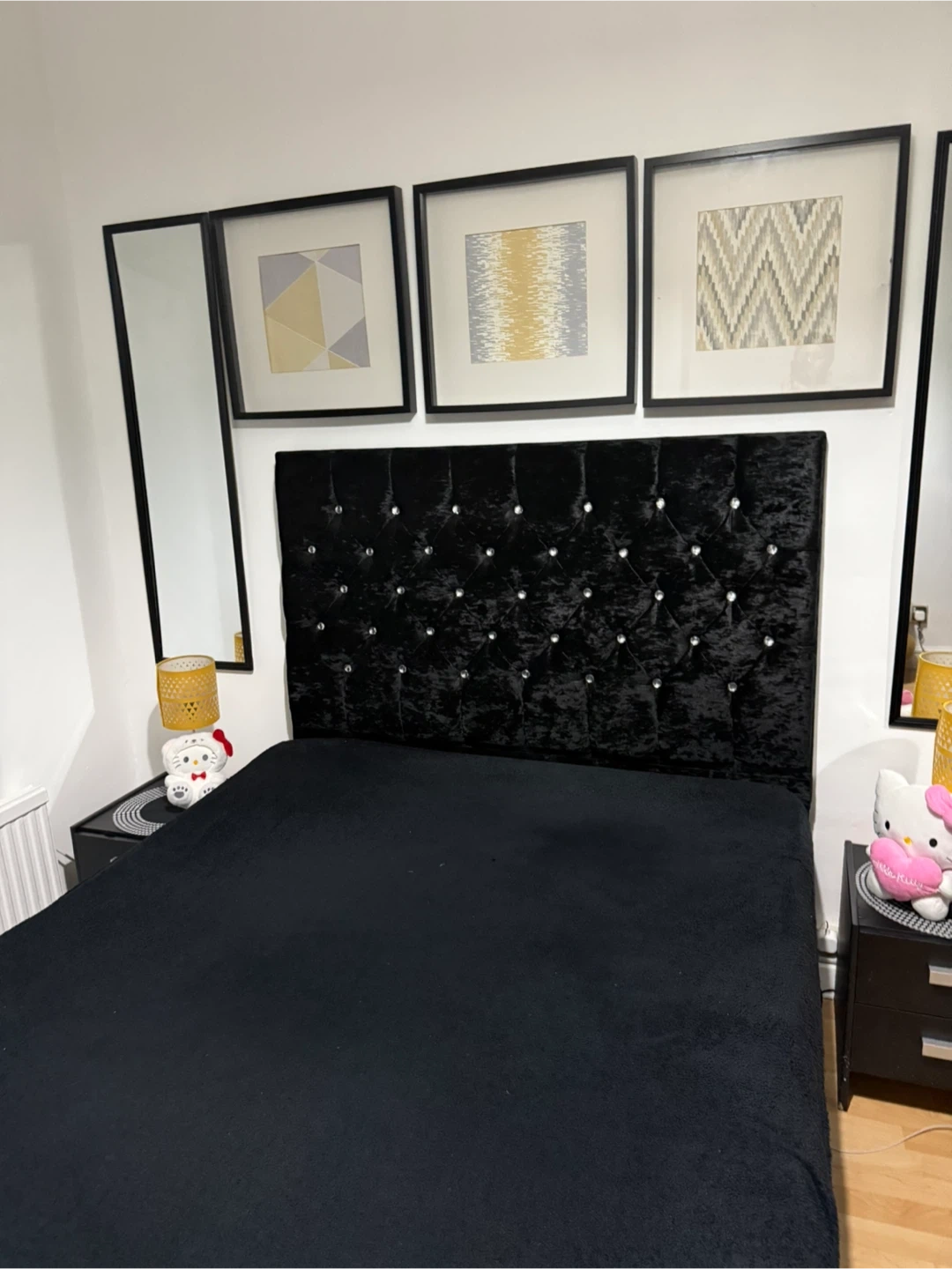 1 reviewSelling a lovely black velvet bed frame with a diamante headboard. It's in great condition and would look lovely in any bedroom. The bed frame has a plush velvet finish and the diamante detailing on the headboard adds a touch of glamour with storage and mattress