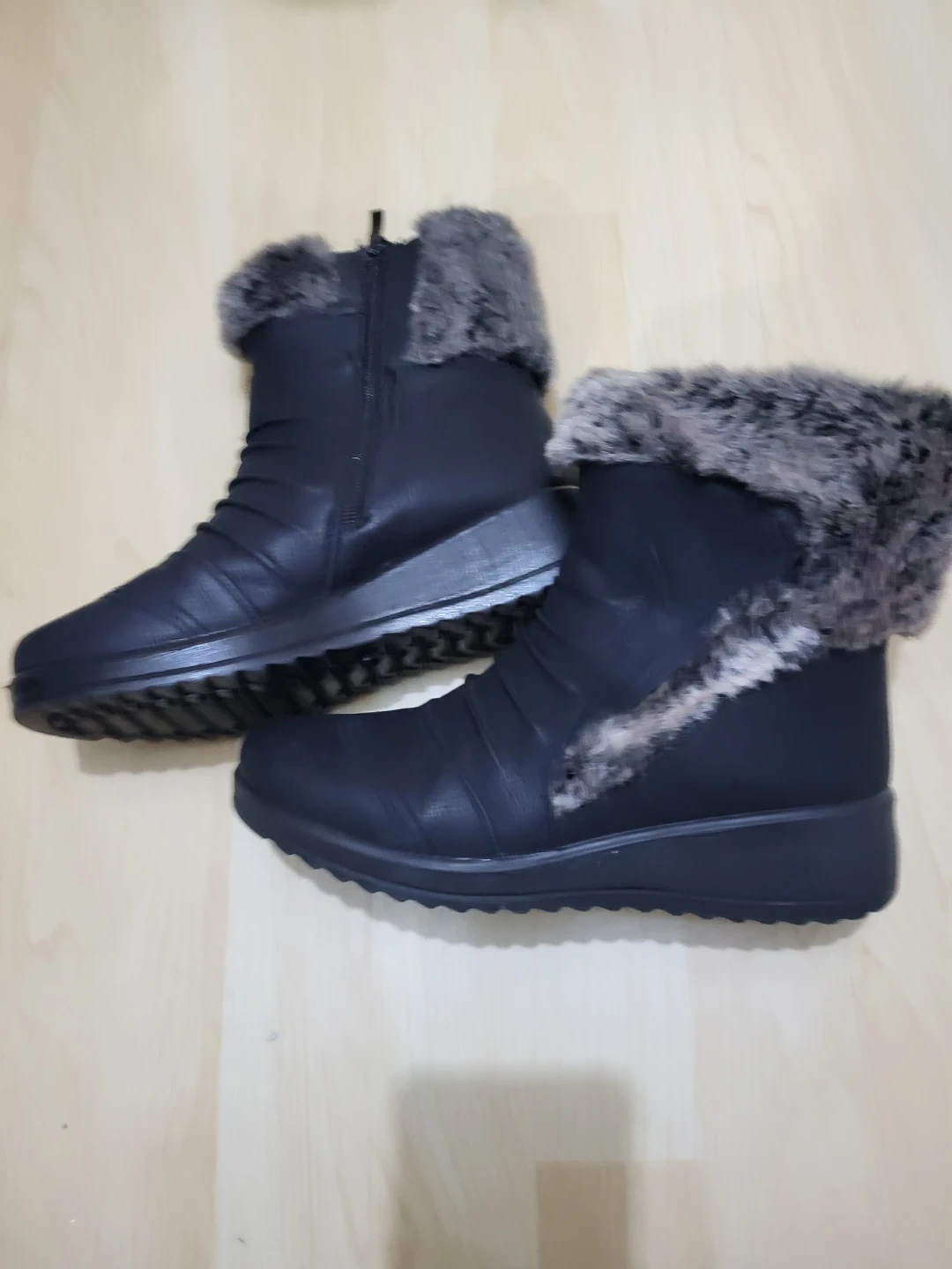 Black Winter Boots with Fur Trim