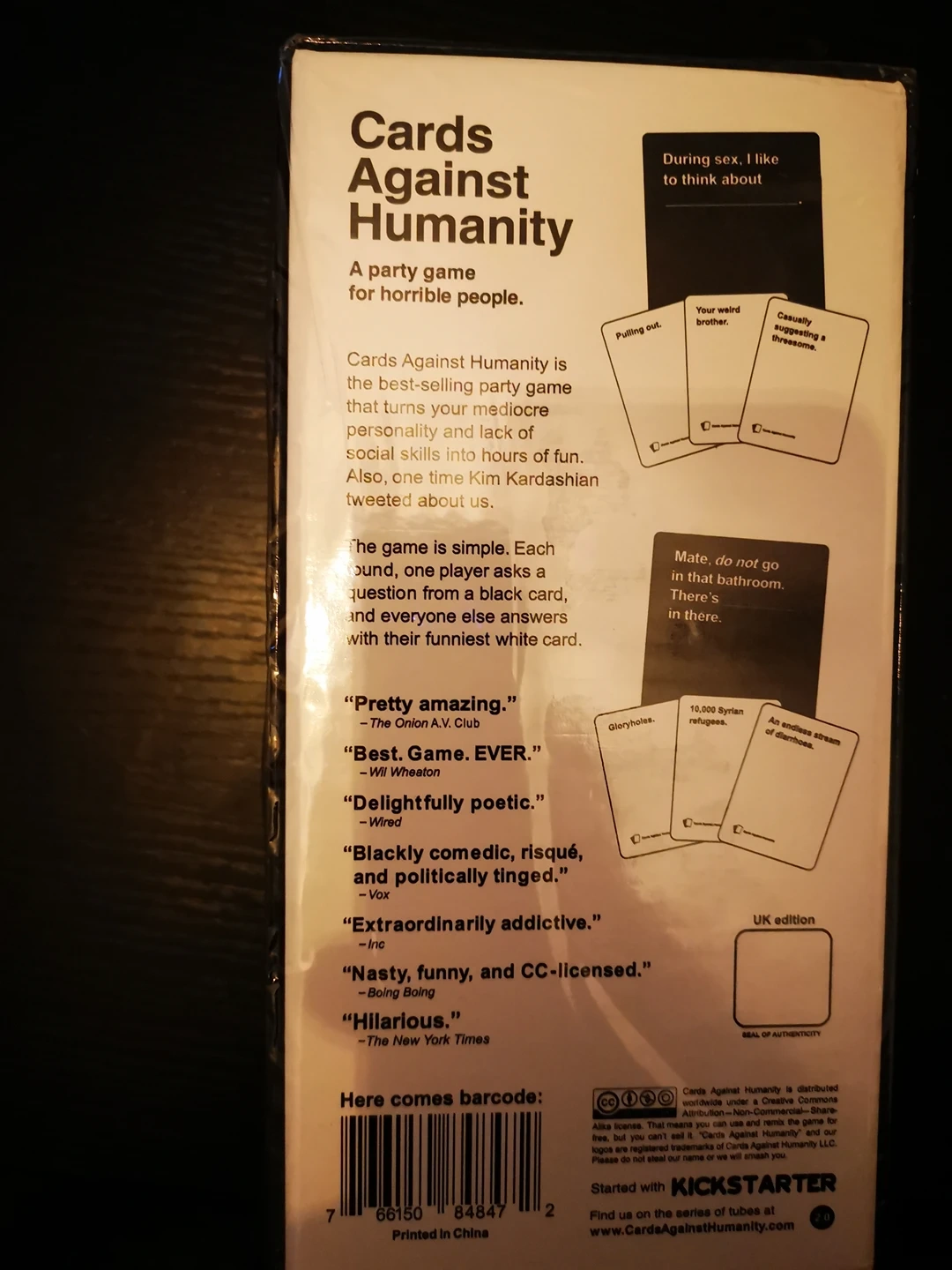 An unopened, completely new Cards Against Humanity. It would make a perfect gift. Collection from Eccles or postage is available for £3.