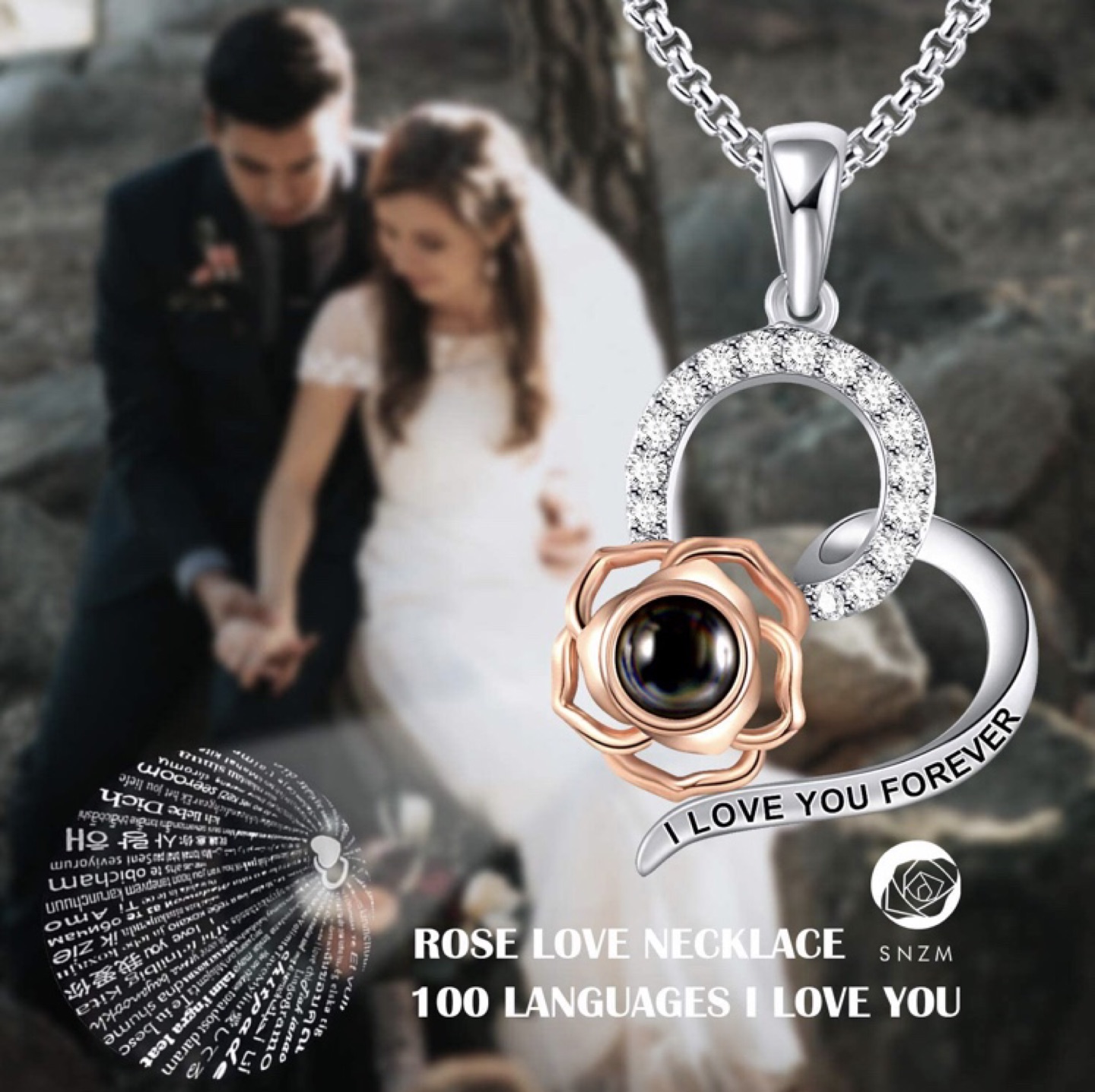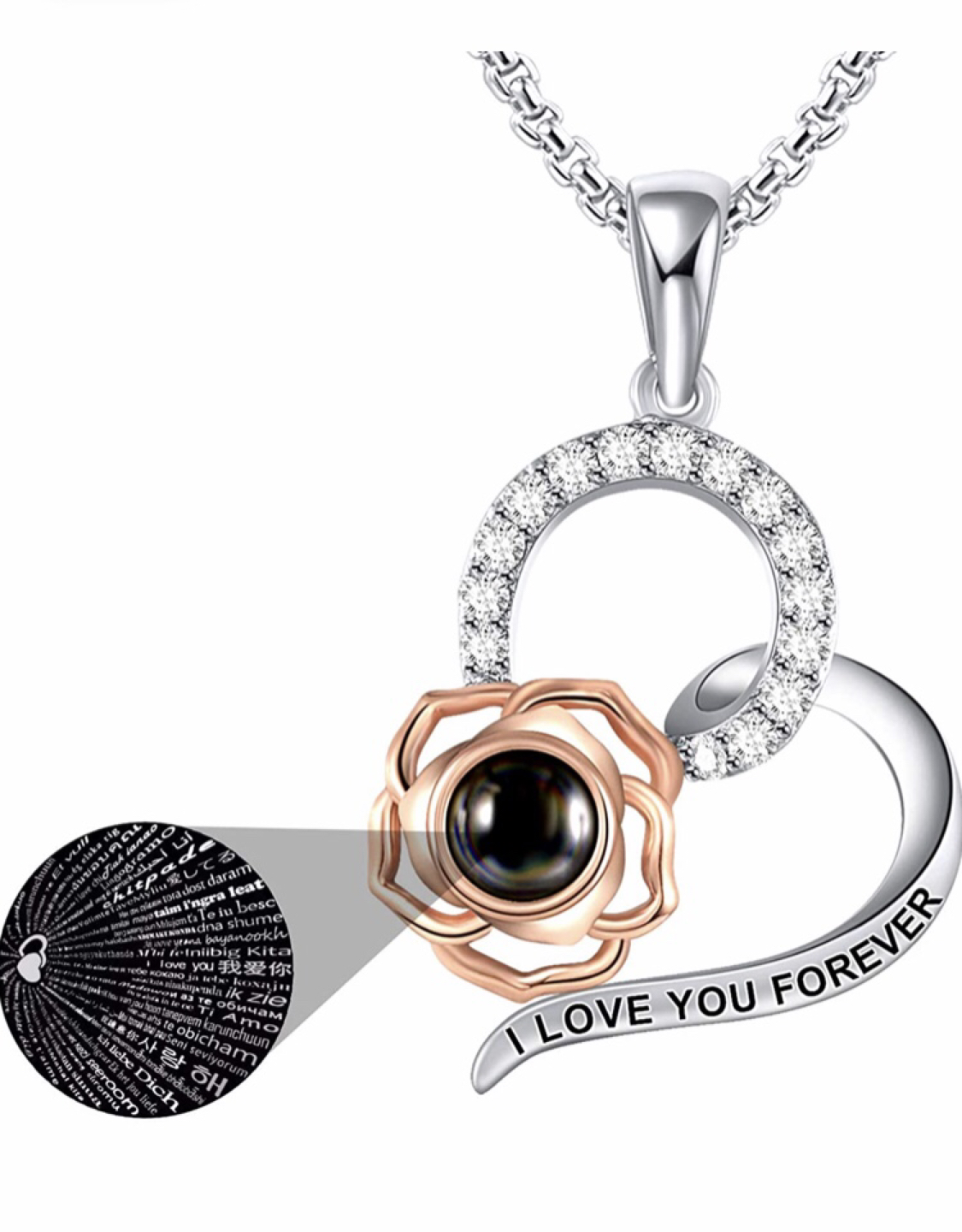 6 reviewsRose Pendant Necklace for Women Girls - Rose Pendant Crystal Love Memory Projection Necklaces for Girlfriend Wife Romantic Valentine's Day Gifts for Her Collection bl1 or could post