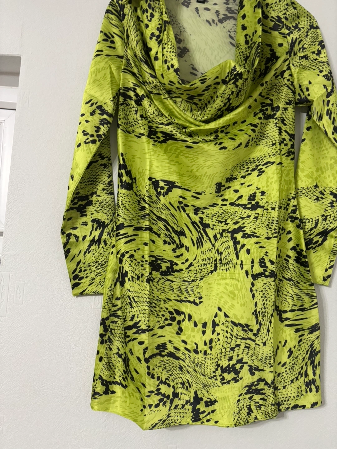 1 reviewA stunning dress in a bold pattern. Long sleeves and a cowl neck. A stylish dress for any occasion, a great way to feel confident and ready for anything. Made in Romania.