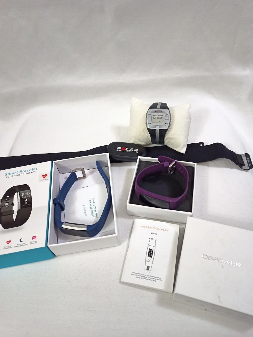 141 reviewsBUNDLE OF HEART RATE FITNESS TRACKERS,POLAR HEART RATE SENSOR & WATCH,SMART BRACELET & HEART RATE FITNESS TRACKER ALL IN GREAT CONDITION UNCHECKED HENCE PRICE.