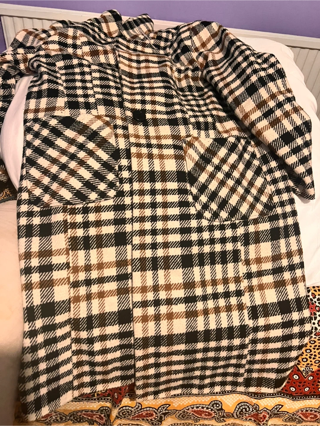 0 reviewsA stylish checkered coat, perfect for adding a touch of flair to your wardrobe. It appears to be in good condition and ready for a new home