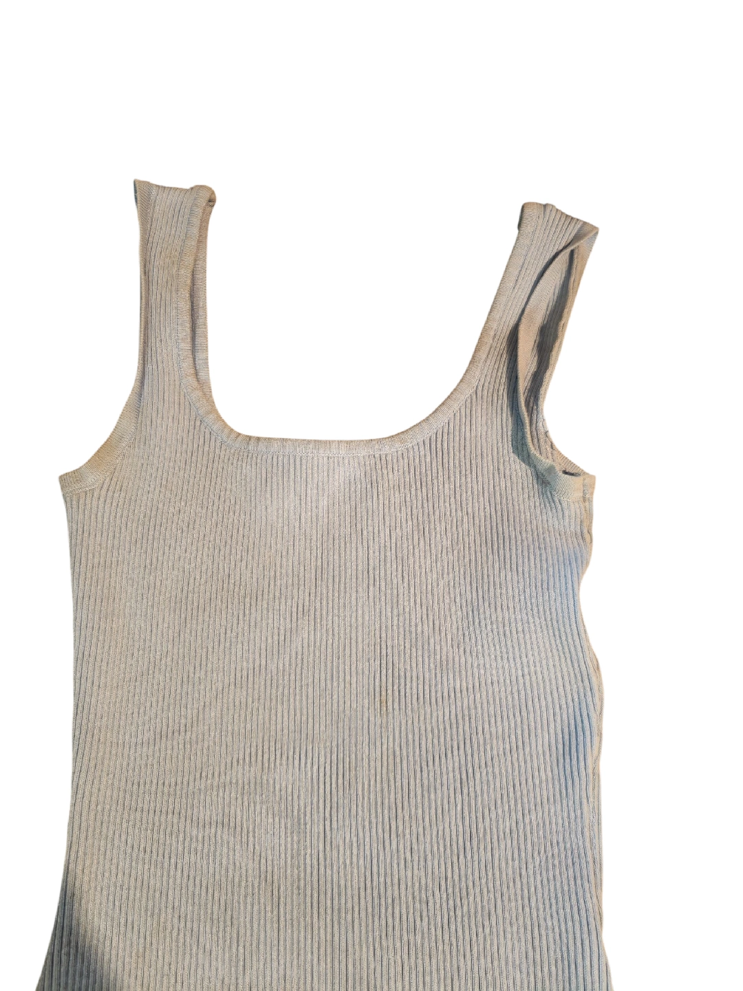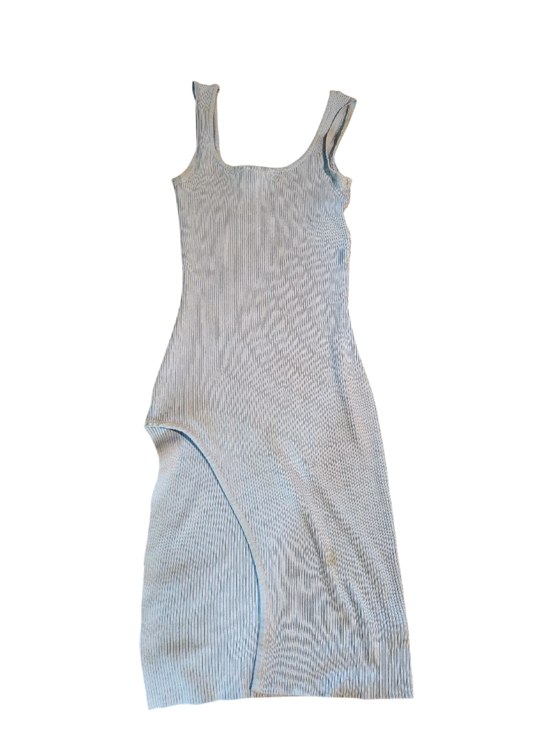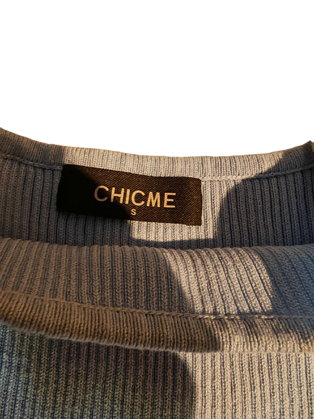 2 reviewsA lovely blue ribbed dress from ChicMe, size small. There are some signs of wear, as shown in the photos, but it's still got plenty of life left in it! Has small mark shown in last photo.
