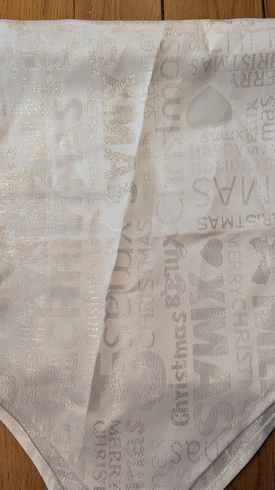 13 reviewsWhite & sparkly silver table runner with silver glitter finish and tassels. Christmas wording, looks brand new, hardly used £5, more things on my profile, Yardley bham