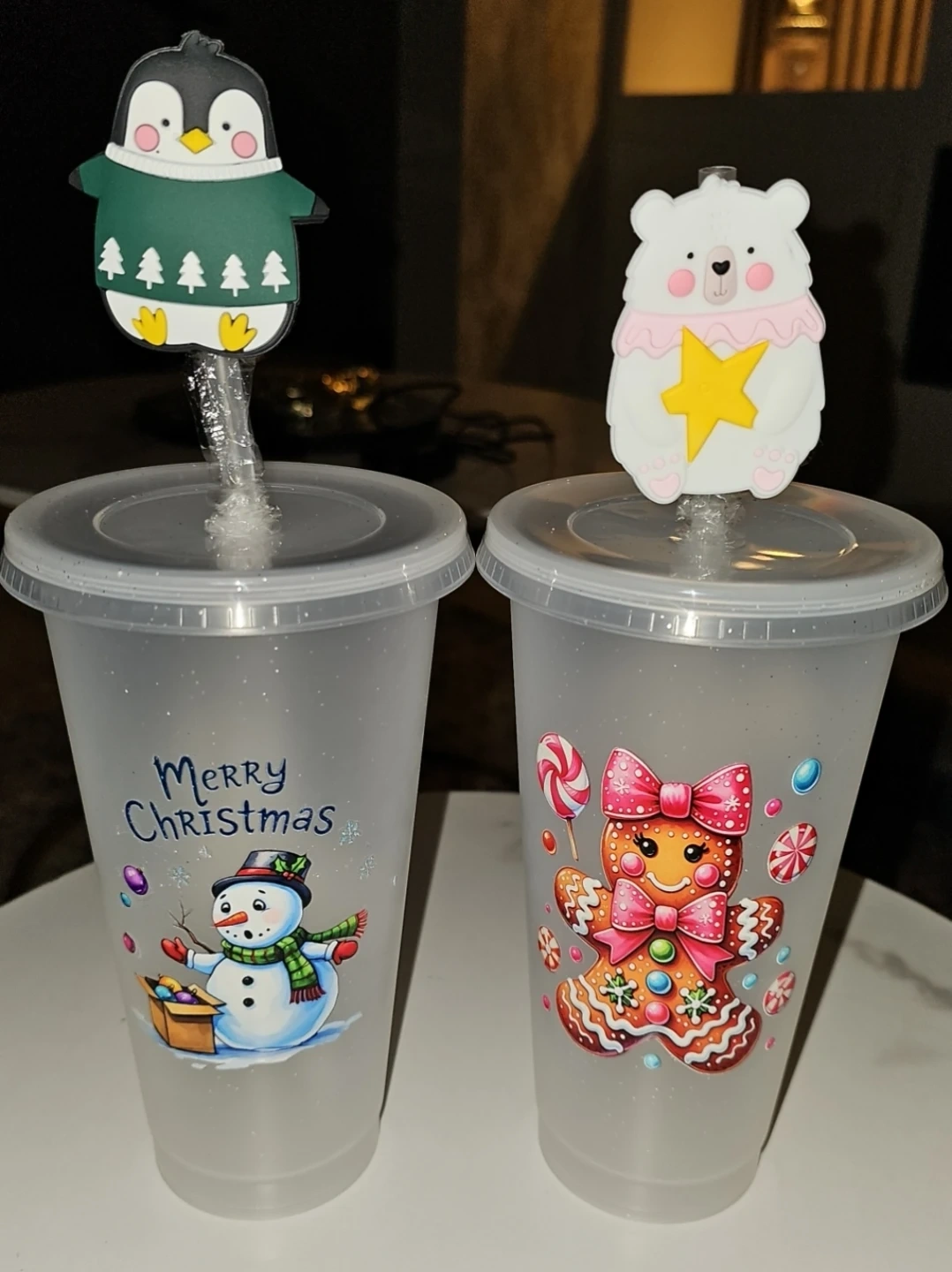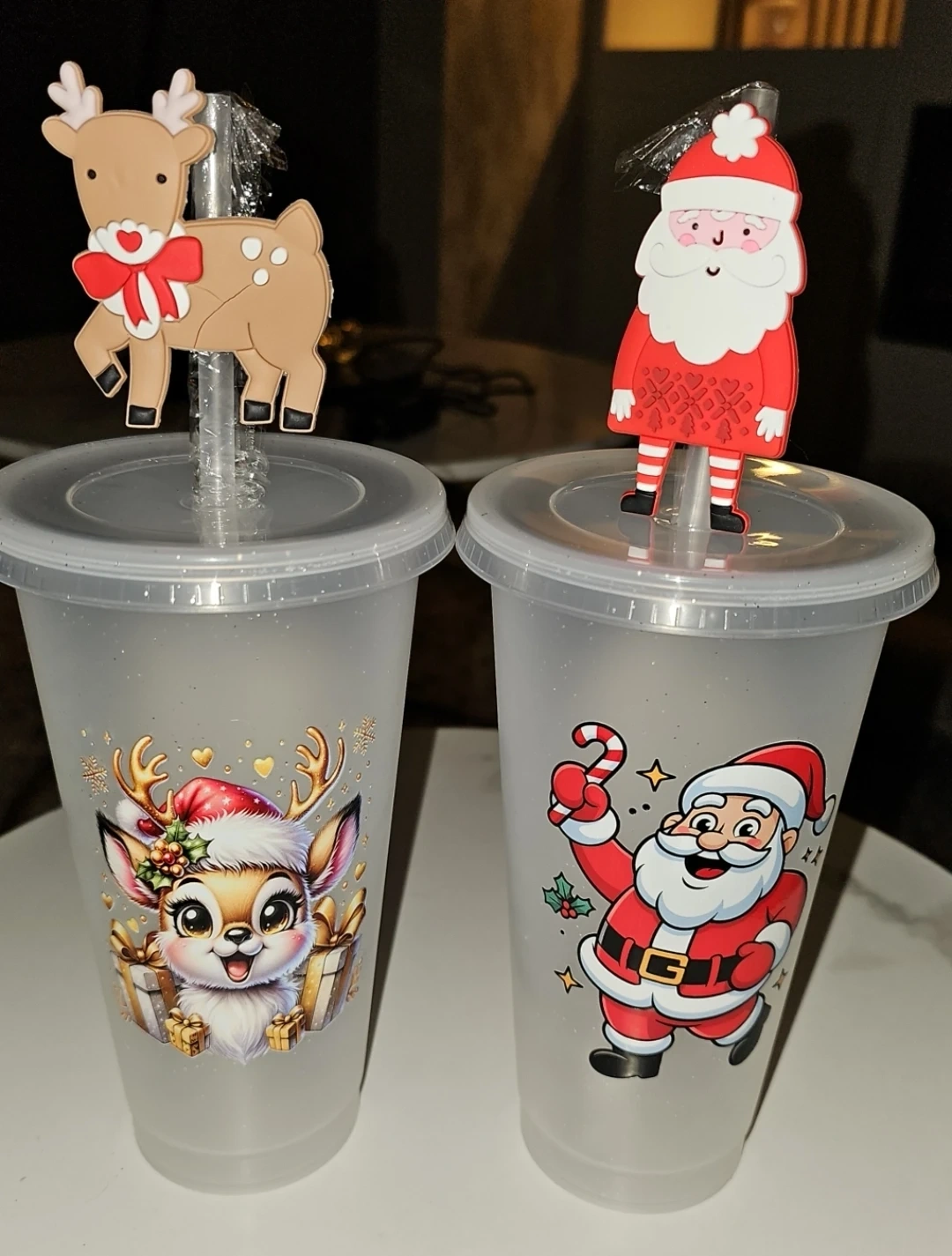 1 reviewGet into the festive spirit with these adorable Christmas themed tumblers! This set of four includes various designs such as a snowman, gingerbread person, reindeer, and Santa. Each tumbler comes with a straw, perfect for enjoying your favourite holiday beverages