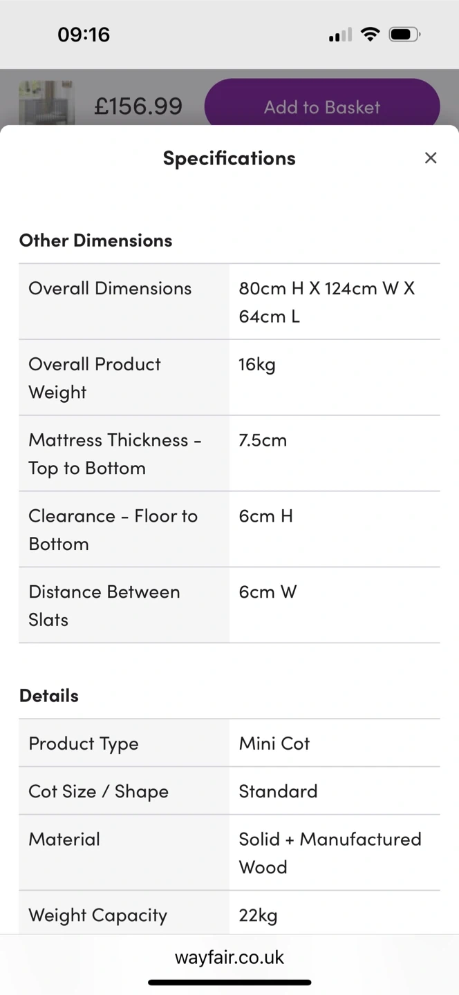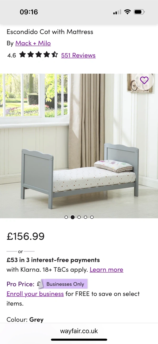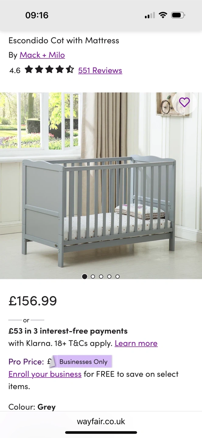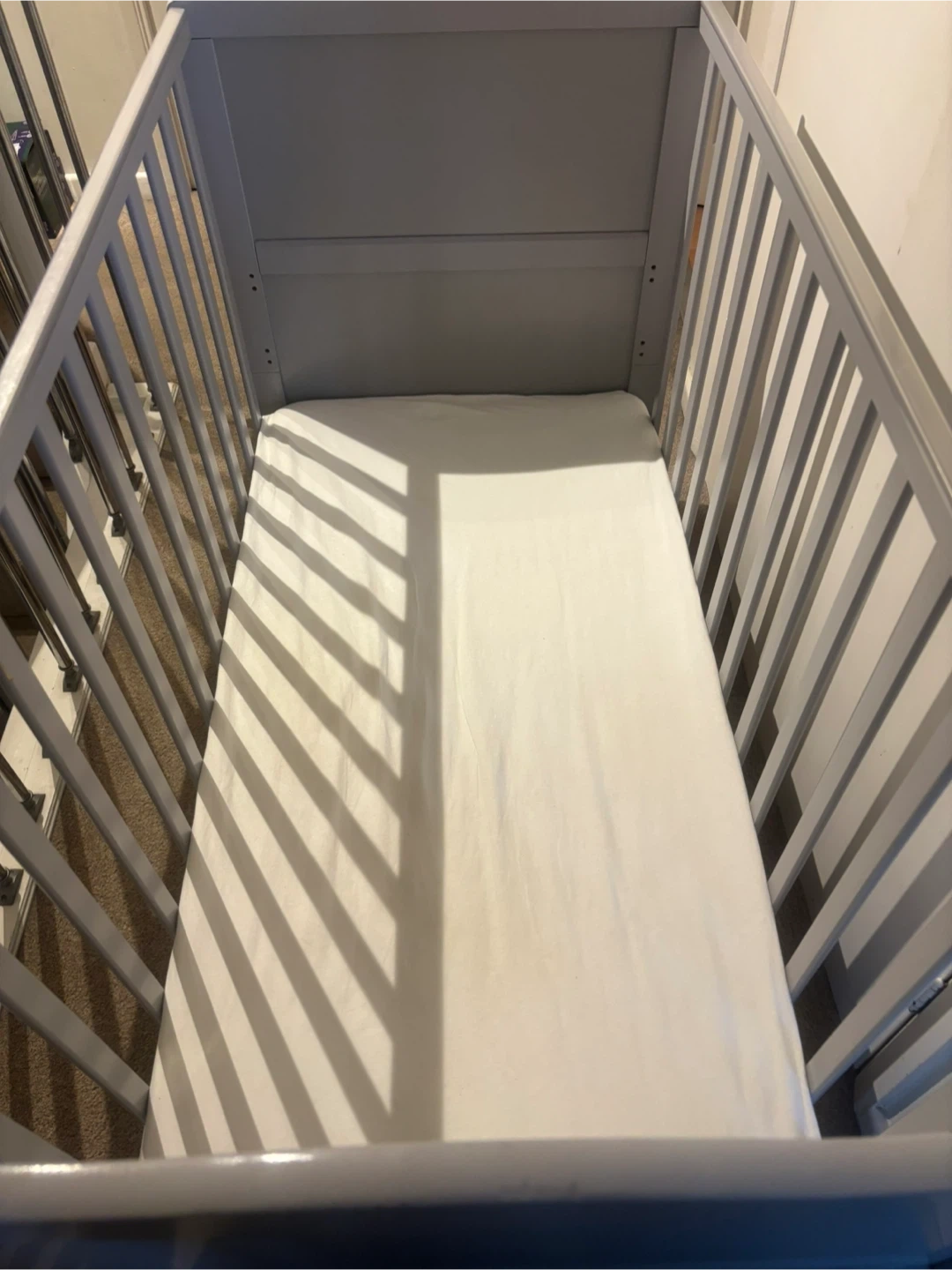 2 reviewsSelling a Mack + Milo Escondido Cot with Mattress in grey. Overall dimensions are 80cm H x 124cm W x 64cm L. It's made from solid and manufactured wood. Originally bought for £156.99 Bargain £50 . Collection Only. Changing Station also available.