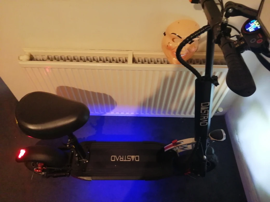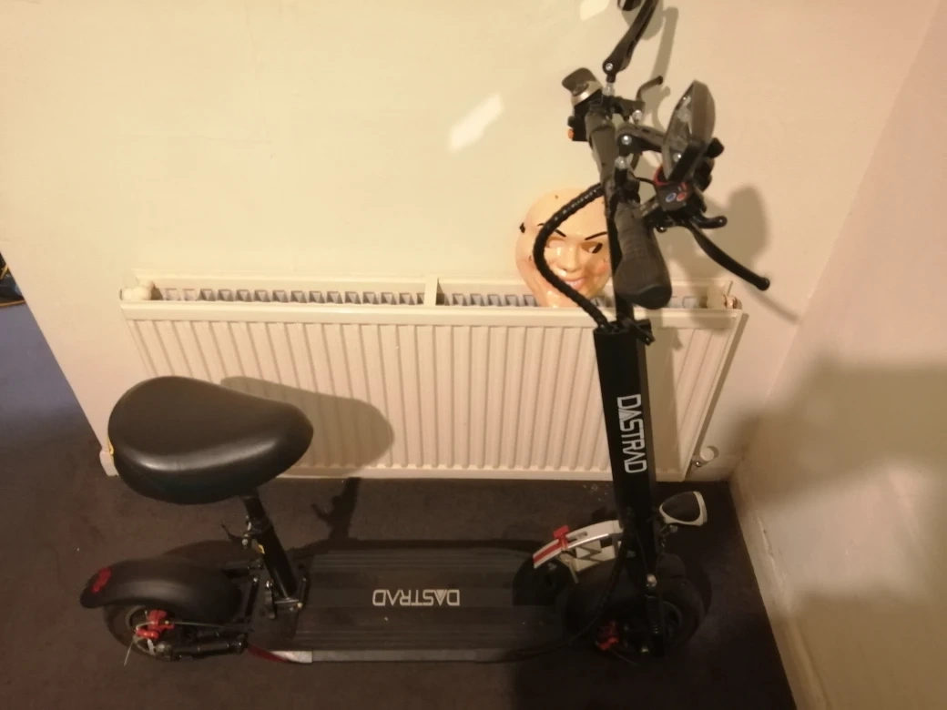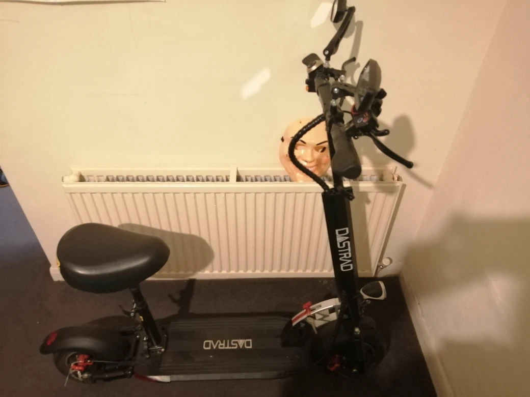 0 reviews500w Dastrad electric scooter in great condition. It has been used twice It has a seat and a digital display. Great for getting around! Added wing mirrors color lights onl the side but can turn off indicators front light but because it's been used twice NO OFFERS FIXED PRICE