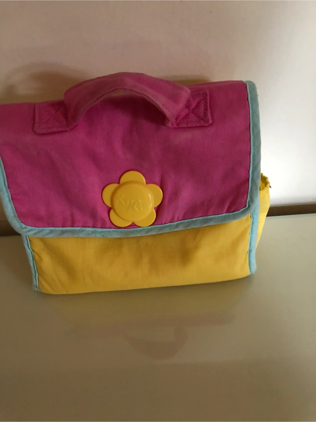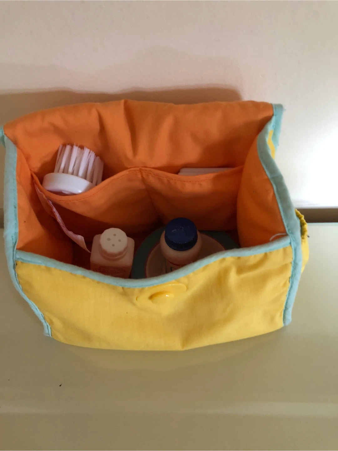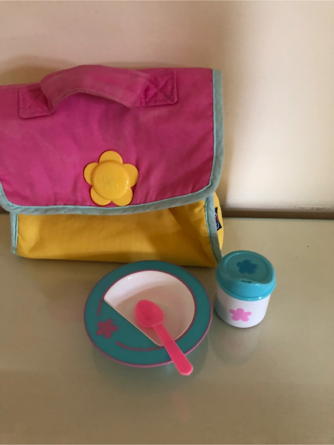 11 reviewsA cute Dolly Bag with accessories. Includes a bag, bottle, bowl, spoon, dolly wipes, talc, cream and brush
