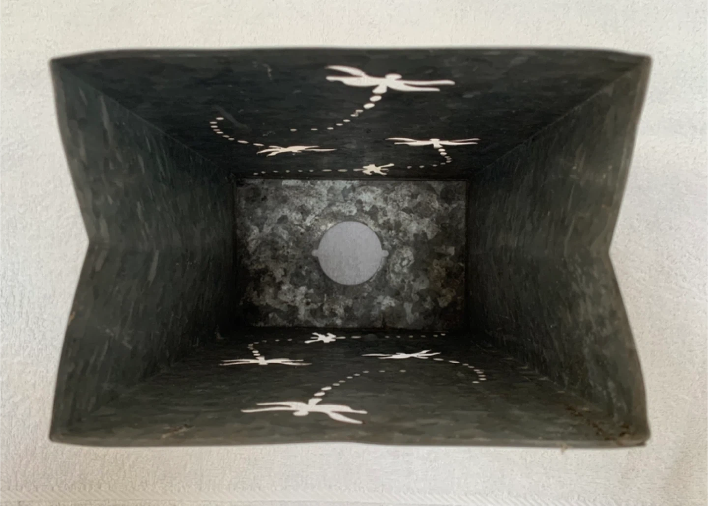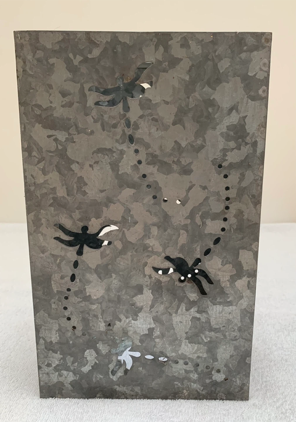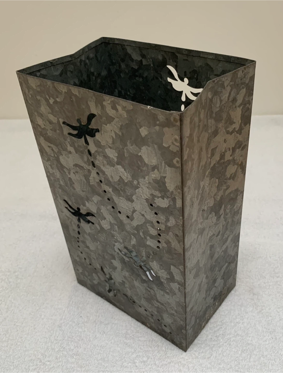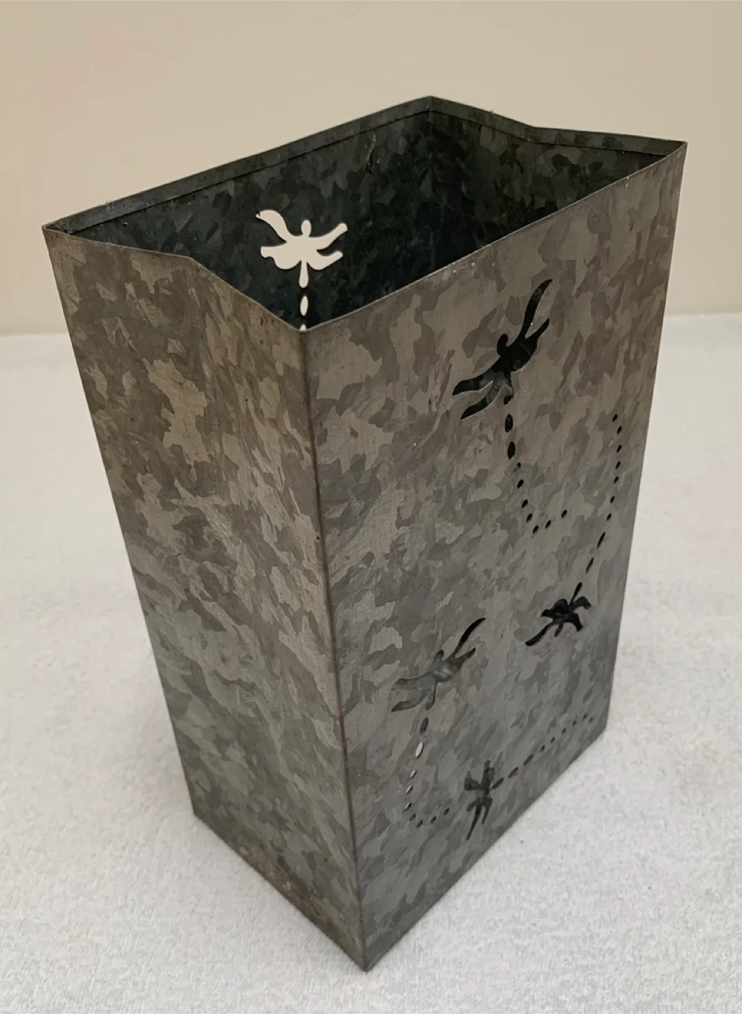 0 reviewsMetal candle feature with dragonfly-shaped holes. Measures roughly 15 x 10 x 25 cm.