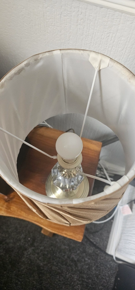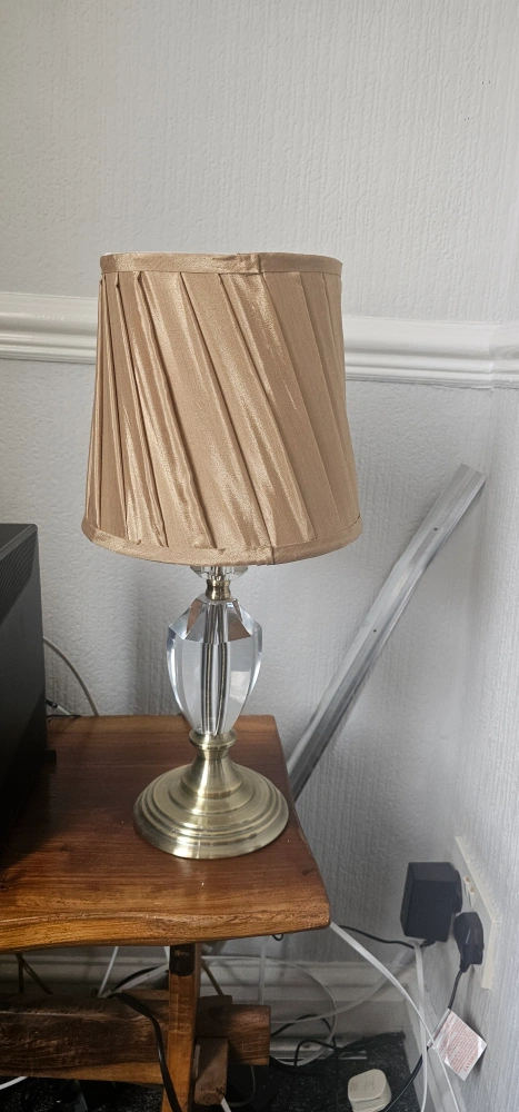 15 reviewsLamp with a pleated lampshade. Features a decorative crystal base and a brass-coloured stand. Complete with a lightbulb. A great way to add a touch of warmth to your bedroom, or your living room.