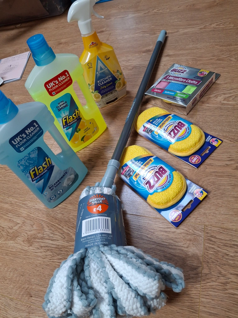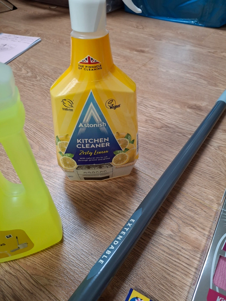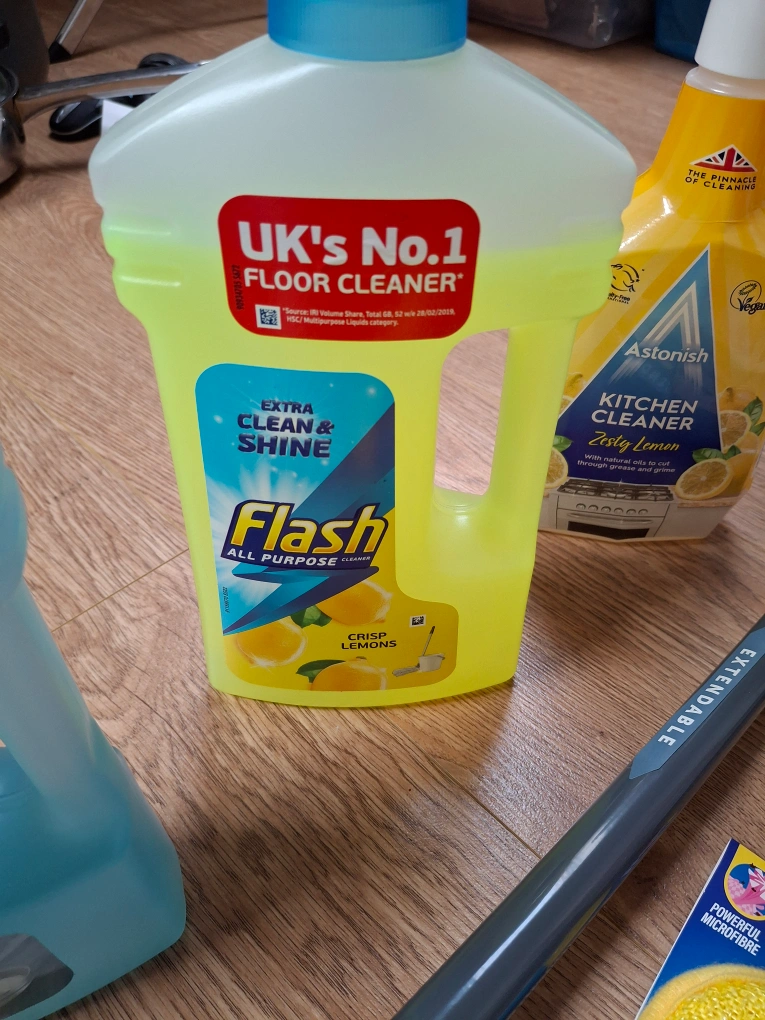 1 reviewExtendable mop with grey and white microfibre head. Includes Flash floor cleaner (lemon and traditional), Astonish kitchen cleaner, and Buzz cleaning cloths and pads. Bargain bundle for cleaning! all for £10 collection b25 delivery will be charge please