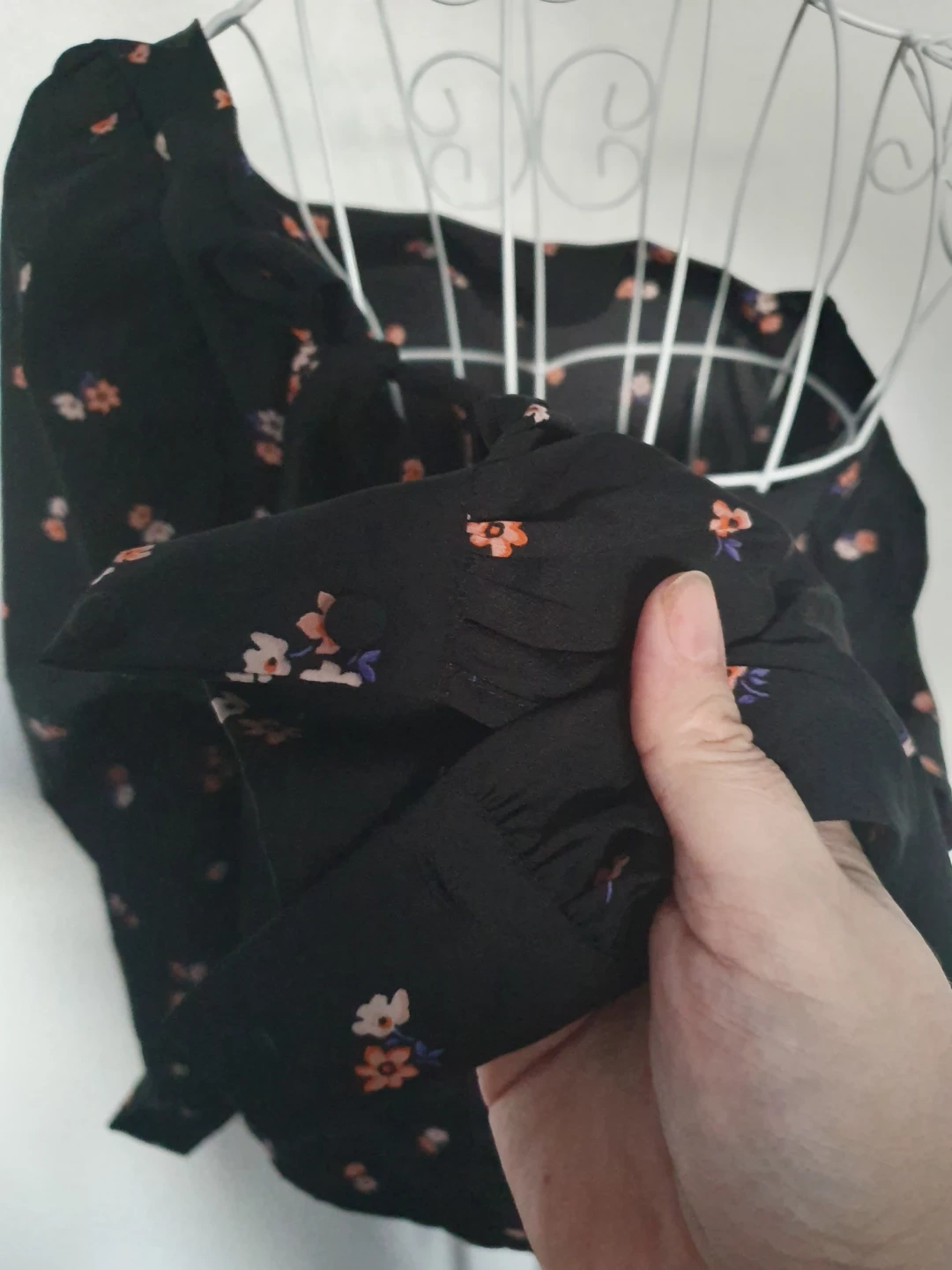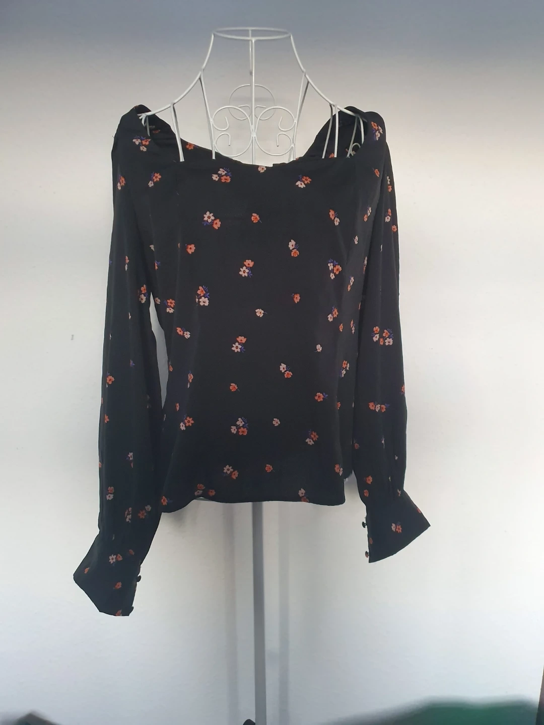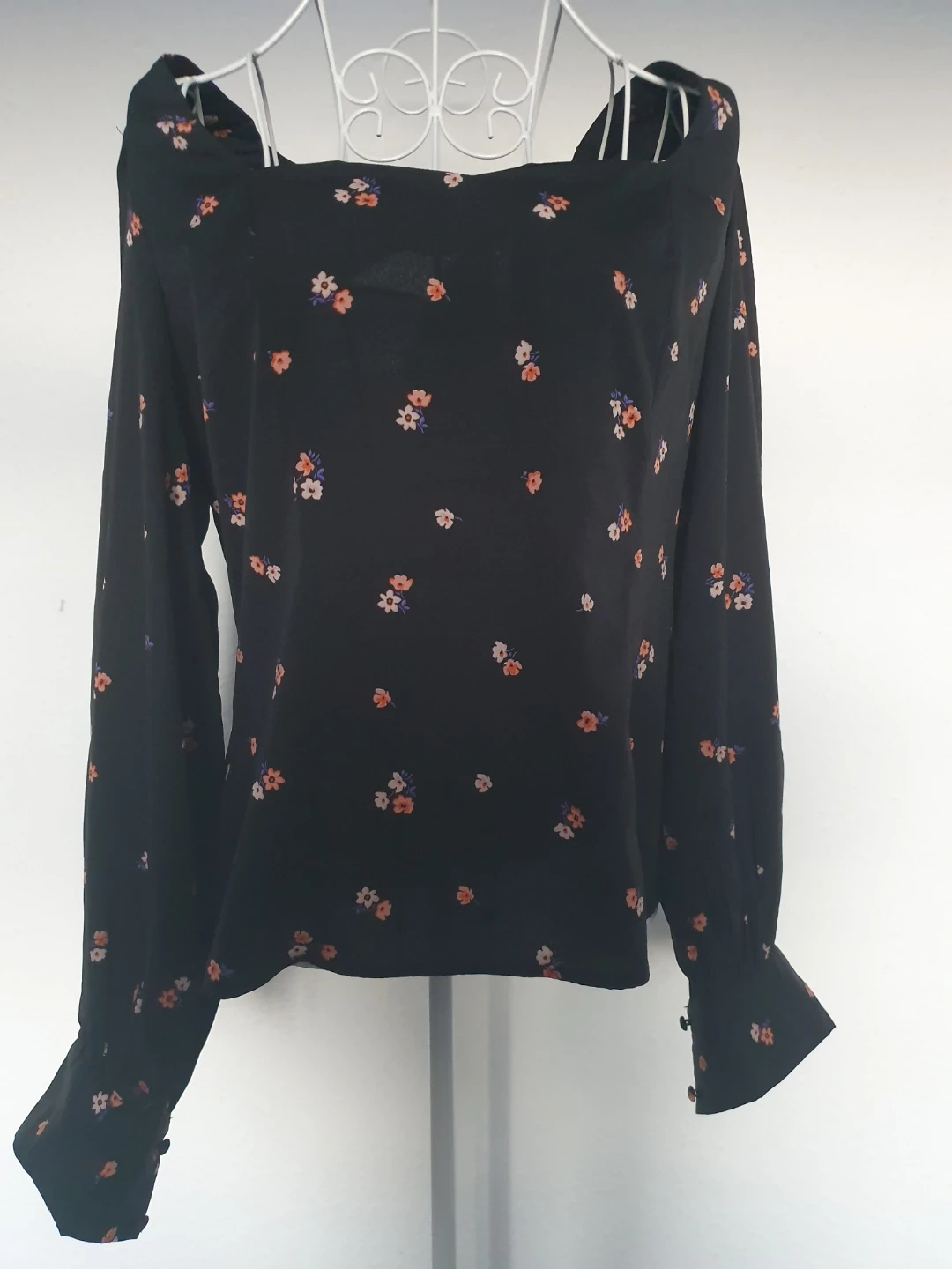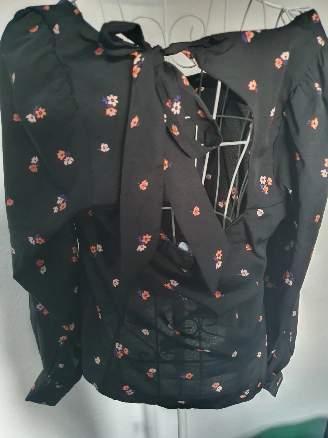 0 reviewsA lovely black blouse with a floral print. It features a tie back detail and long sleeves with buttoned cuffs. Perfect for adding a touch of elegance to your wardrobe