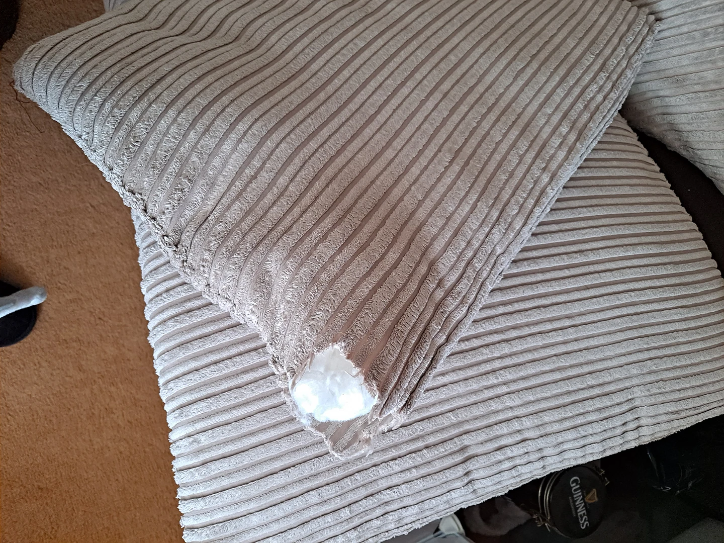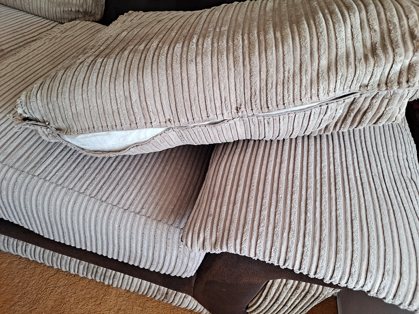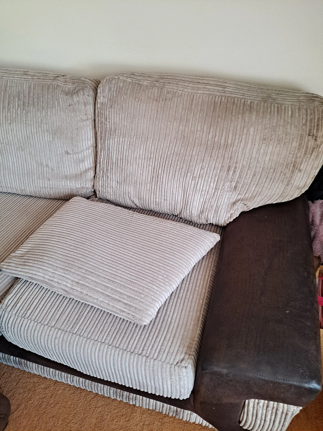 1 reviewFREE sofa. was bought second hand just before Chrismas but no longer needed as downsizing. some bits of damage on x2 cushions,- as shown in pics! one of the back cushions the zip is broke and has been held together with safety pins, one of the removable arm rest cushions has a corner tear which can be stitched together, I just didn't get around to it. super comfortable and all the supports are intact. would be perfect for just starting out or like me, a temporary sofa. need gone asap as moving soon, collection from Atherton