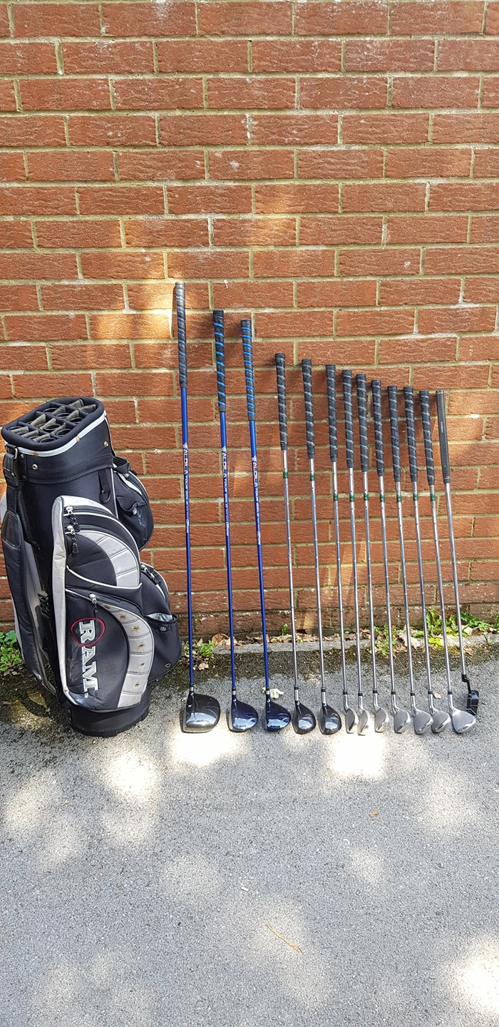 0 reviewsFull Set of Mens Golf Clubs - RAM Wizard 3 - SW with True Temper Steel Shafts & Cavity Back Heads Left Hand John Letters T2 10.5 Degree Driver with Aldila Tour Gold Regular Flex Graphite Shaft John Letters T-Series 3 Wood with Aldila Tour Gold Regular Flex Graphite Shaft John Letters T-Series 5 Wood with Aldila Tour Gold Regular Flex Graphite Shaft Donnay Pro One 7 Putter RAM Trolley Bag Also comes with Balls & Tees