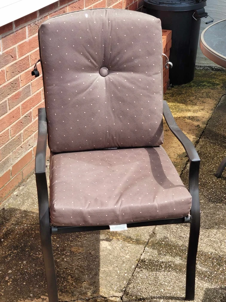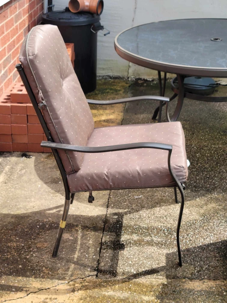 1 reviewBrown oval table and 6 chairs with cushions very good condition .