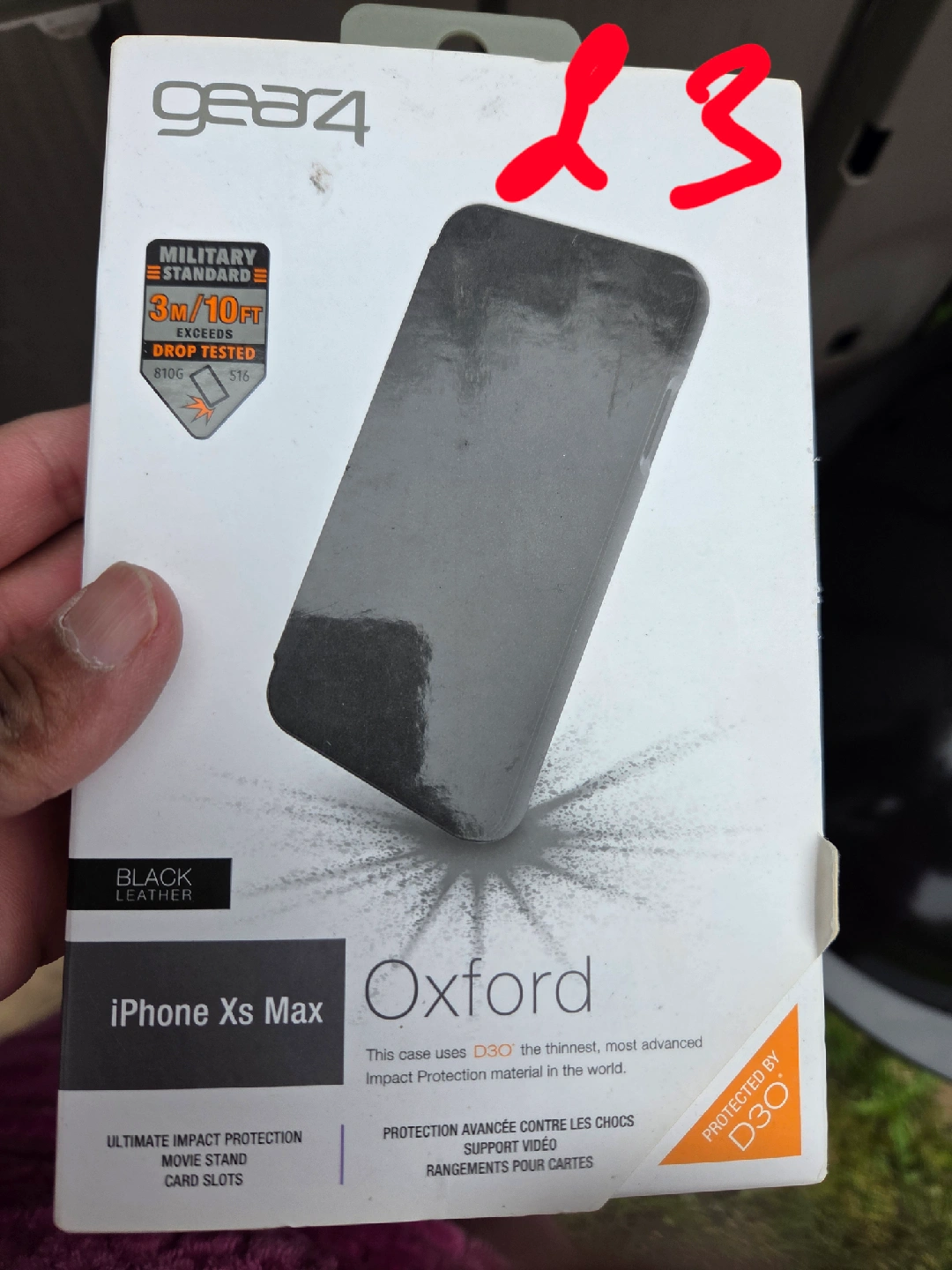 30 reviewsSelling a Gear4 Oxford case for the iPhone Xs Max. It's made with black leather and features D3O impact protection material. The case also has a built-in movie stand and card slots. It's been drop tested to military standards (3m/10ft).