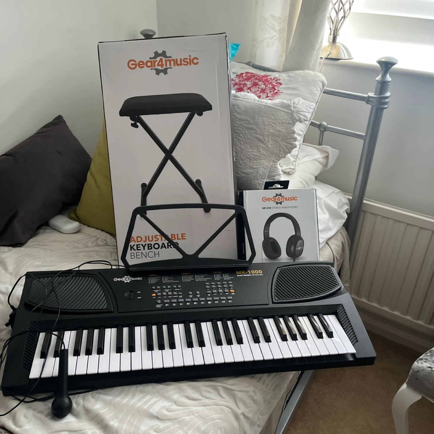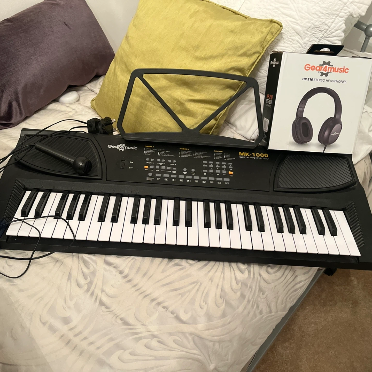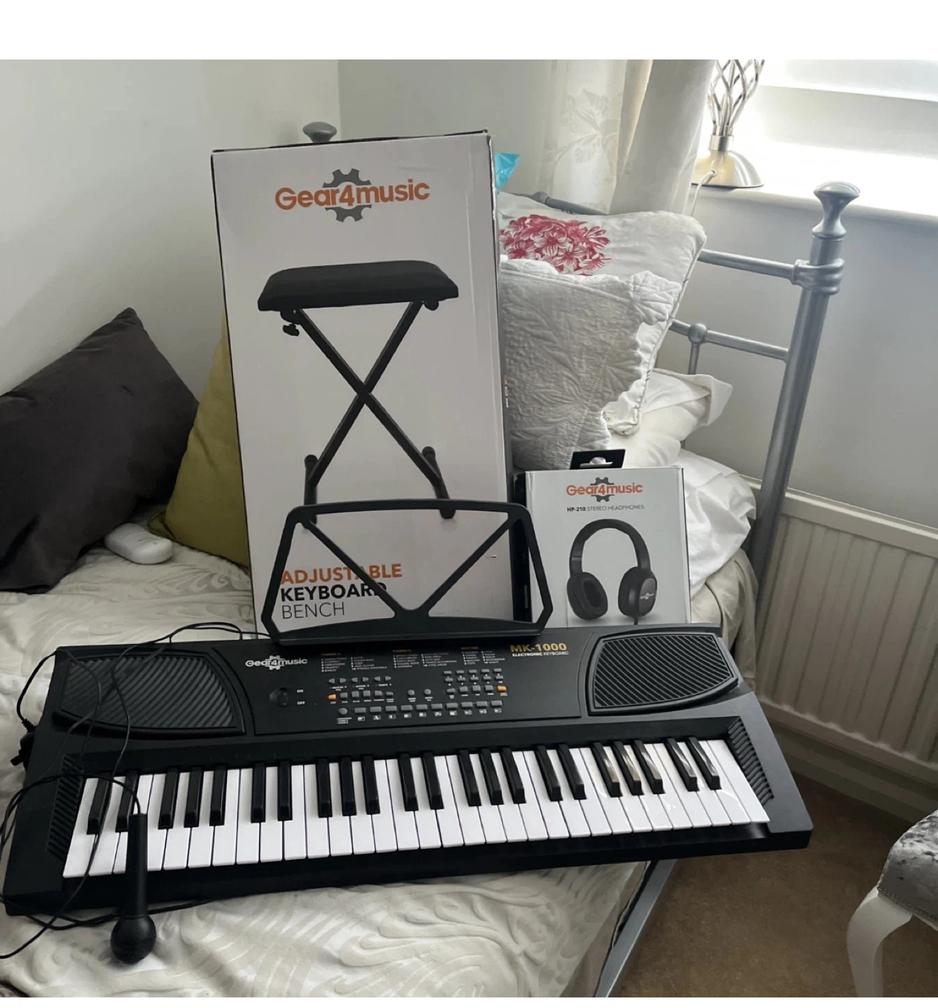 6 reviewsSelling a Gear4music MK-1000 keyboard along with an adjustable keyboard bench microphone and a pair of HP-210 stereo headphones. All in good condition and ready for a new home. Perfect for someone starting out learning the keyboard! Keyboard has been used but the stand and headphones are still boxed and the Mike has been used