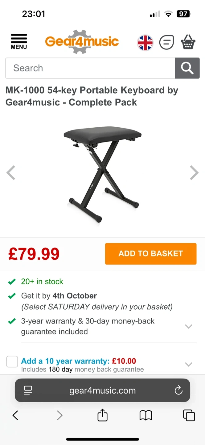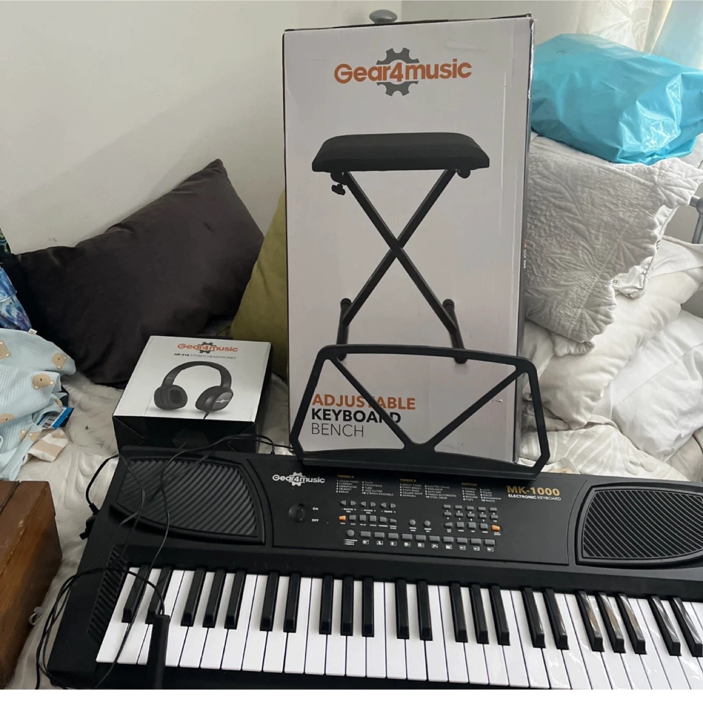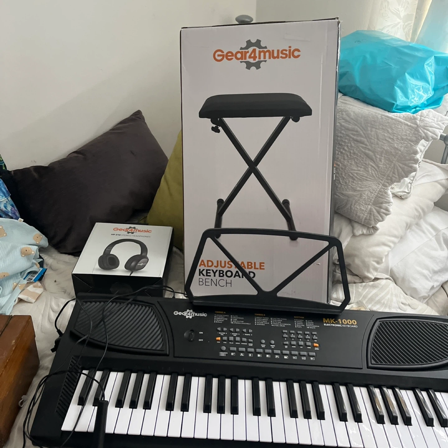 6 reviewsSelling a Gear4music MK-1000 keyboard along with an adjustable keyboard bench microphone and a pair of HP-210 stereo headphones. All in good condition and ready for a new home. Perfect for someone starting out learning the keyboard! Keyboard has been used but the stand and headphones are still boxed and the Mike has been used