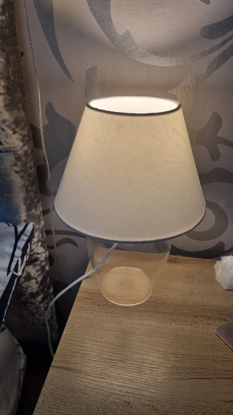 24 reviewsHere's a lovely glass table lamp that would look great in any room. It features a clear glass base and a white-coloured shade. Perfect for adding a touch of elegance to your bedside table or living room