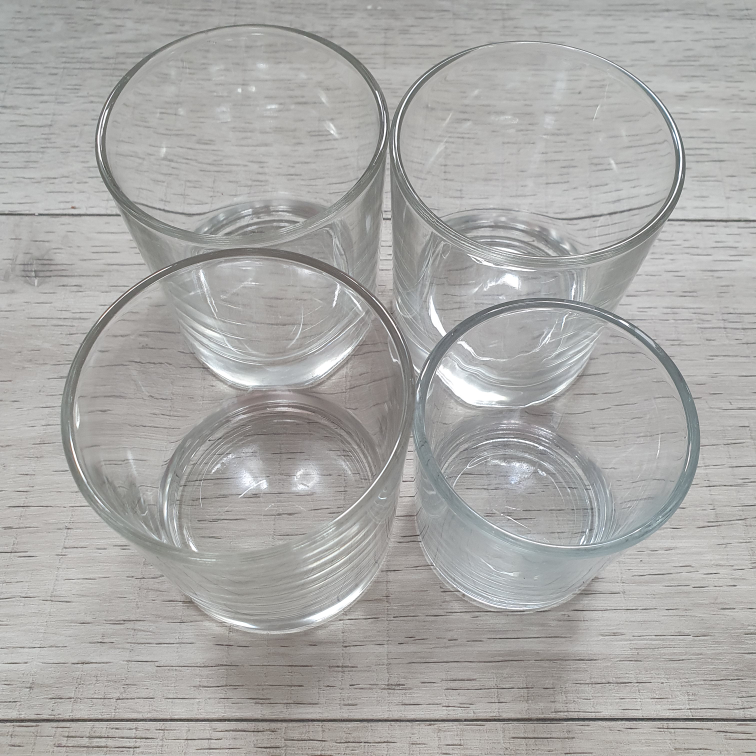 1 review4x glasses (3x same size and one smaller one) - could be used in a variety of ways. Very good condition, no cracks.
