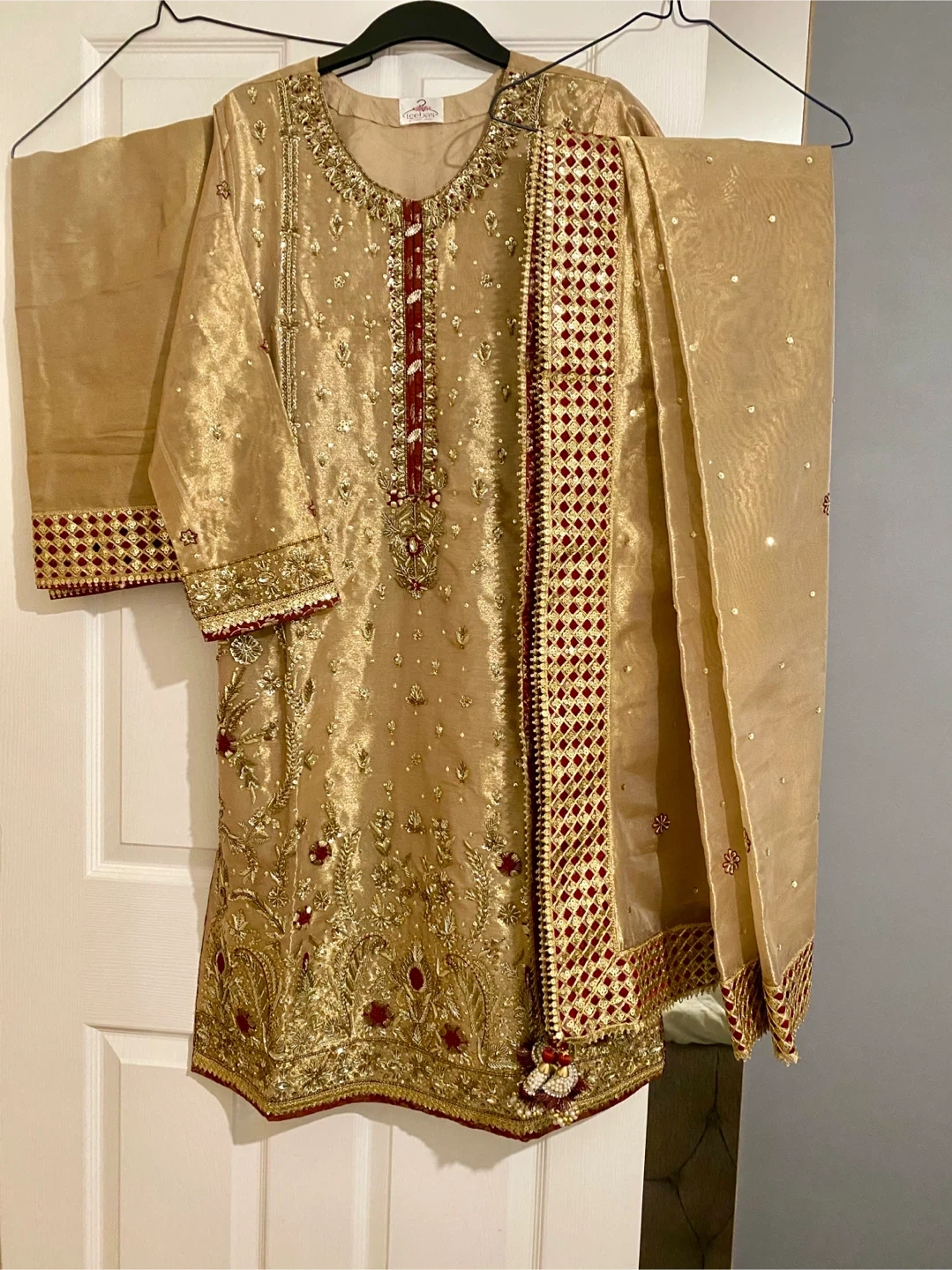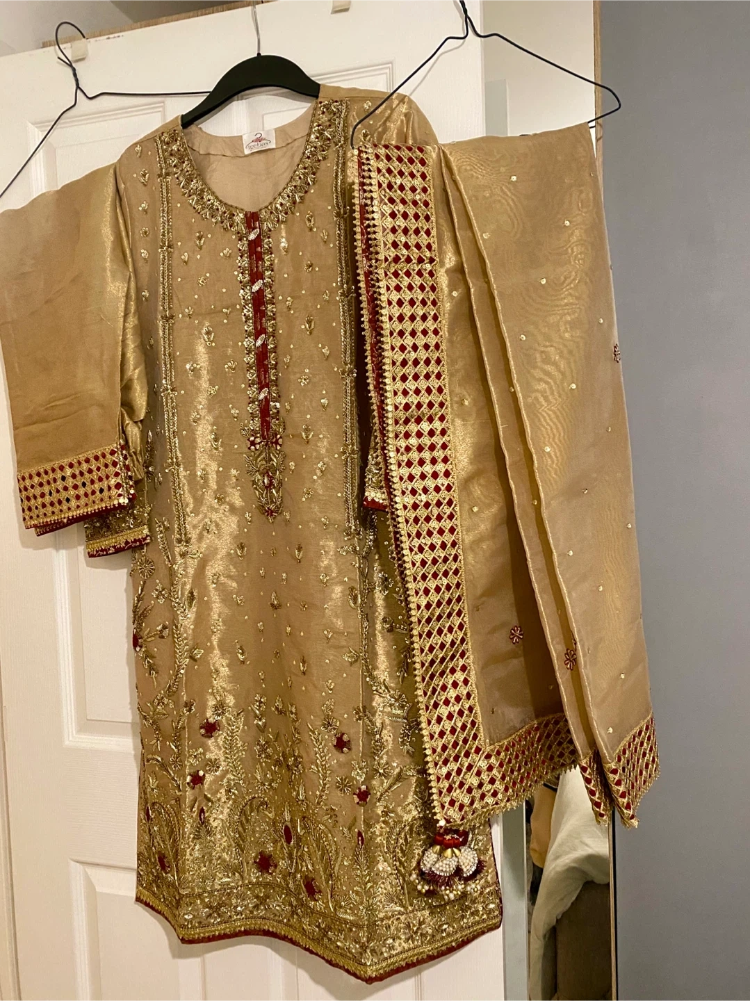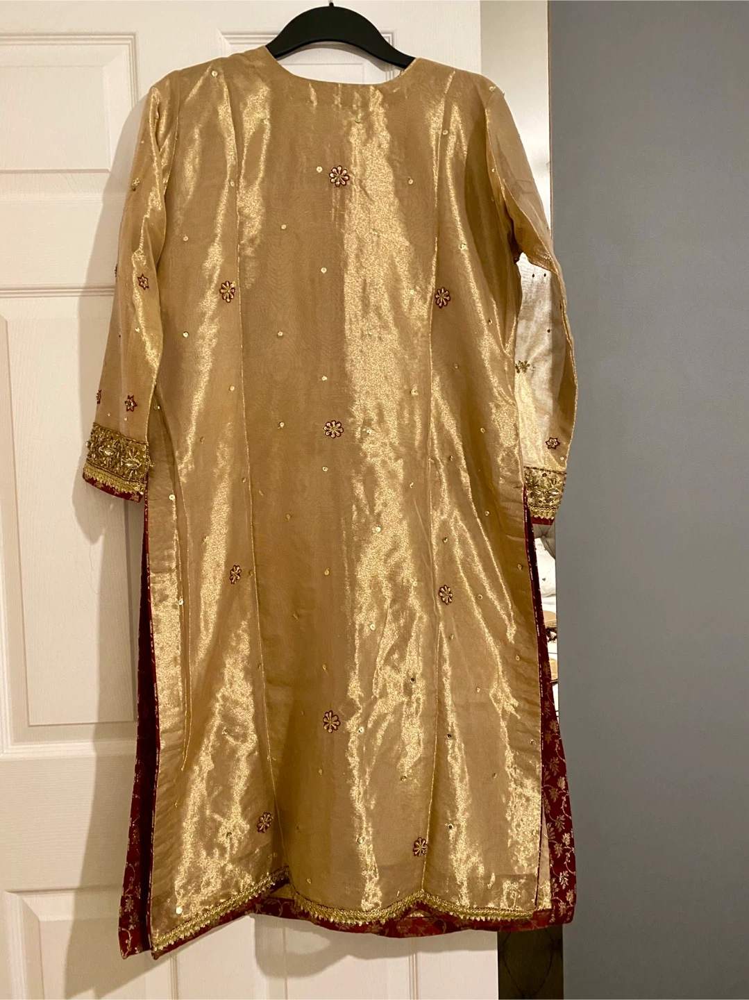 12 reviewsBeautiful gold coloured Asian outfit with intricate embroidery. Perfect for special occasions!