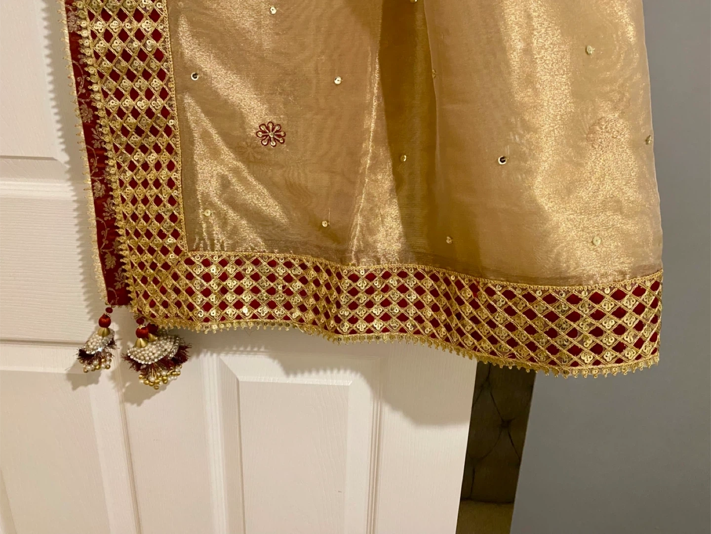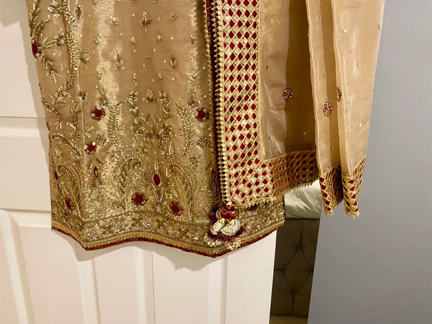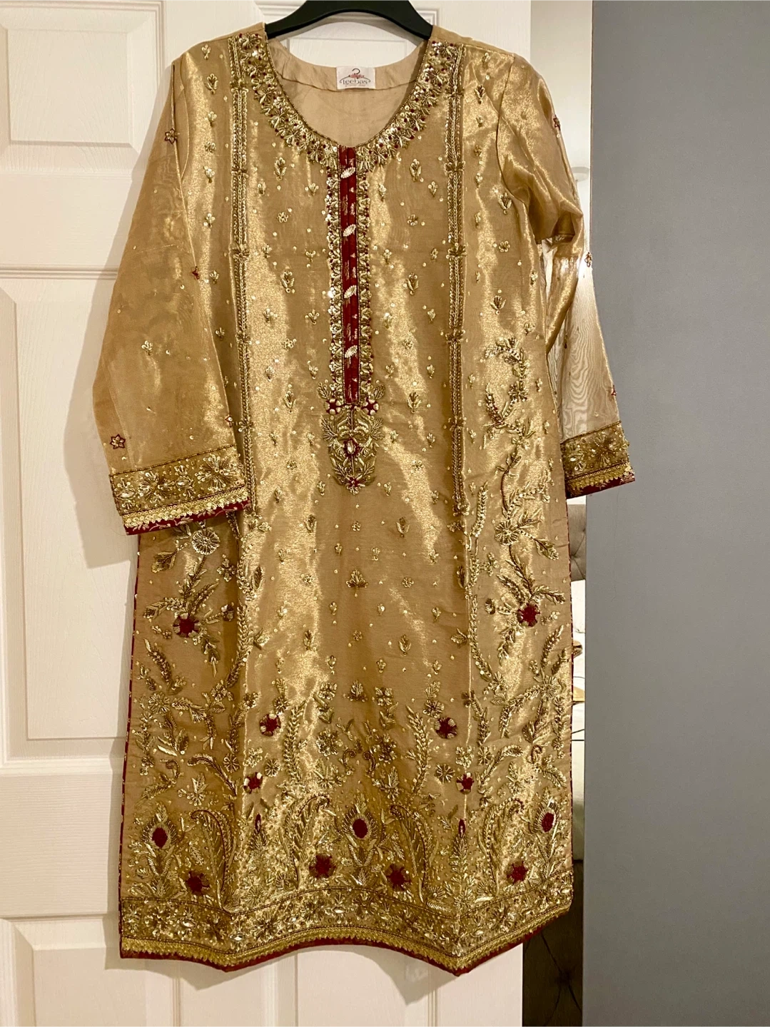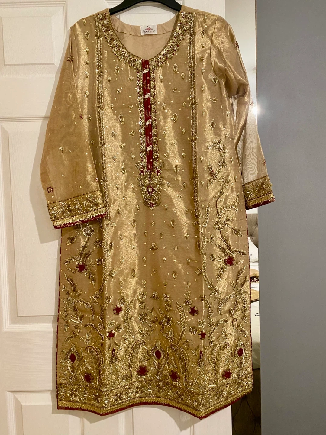 12 reviewsBeautiful gold coloured Asian outfit with intricate embroidery. Perfect for special occasions!