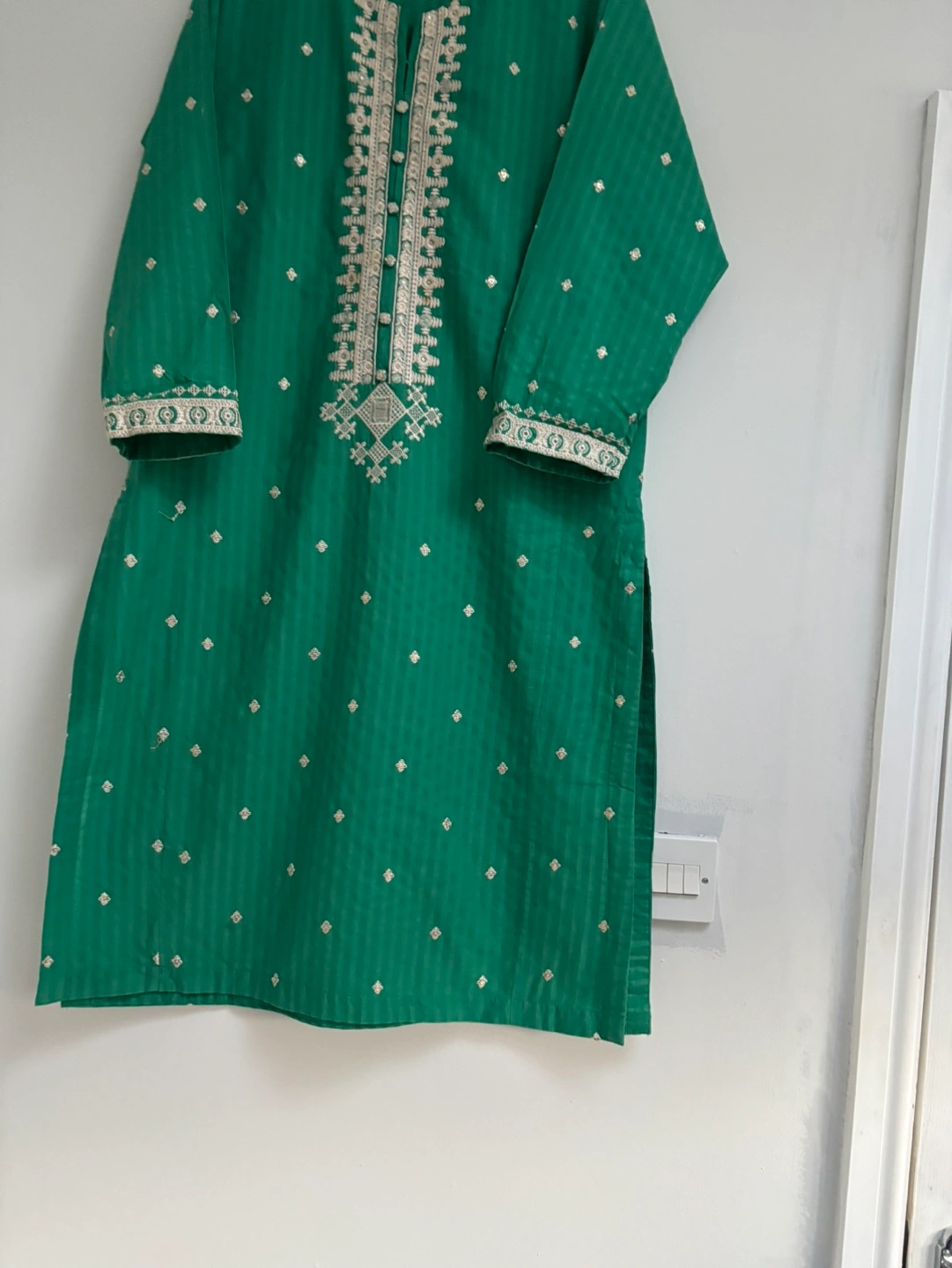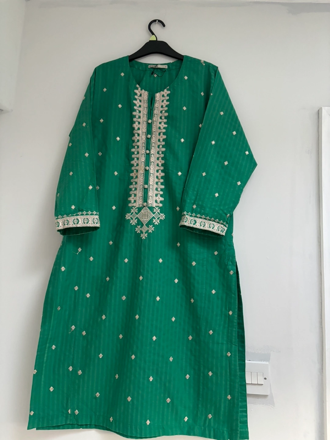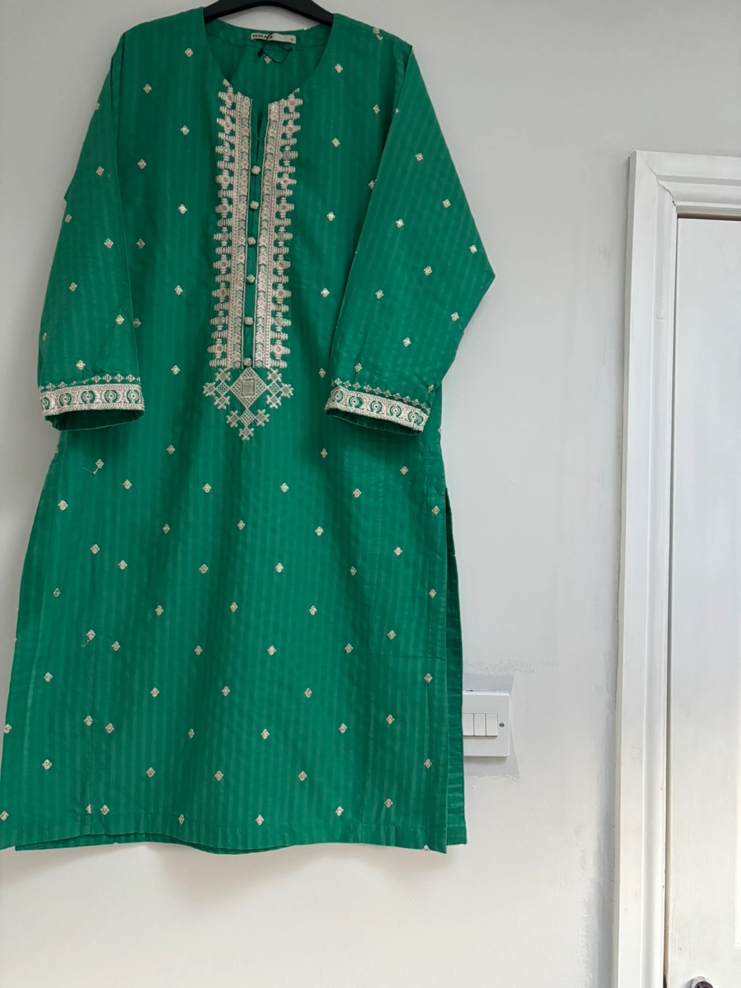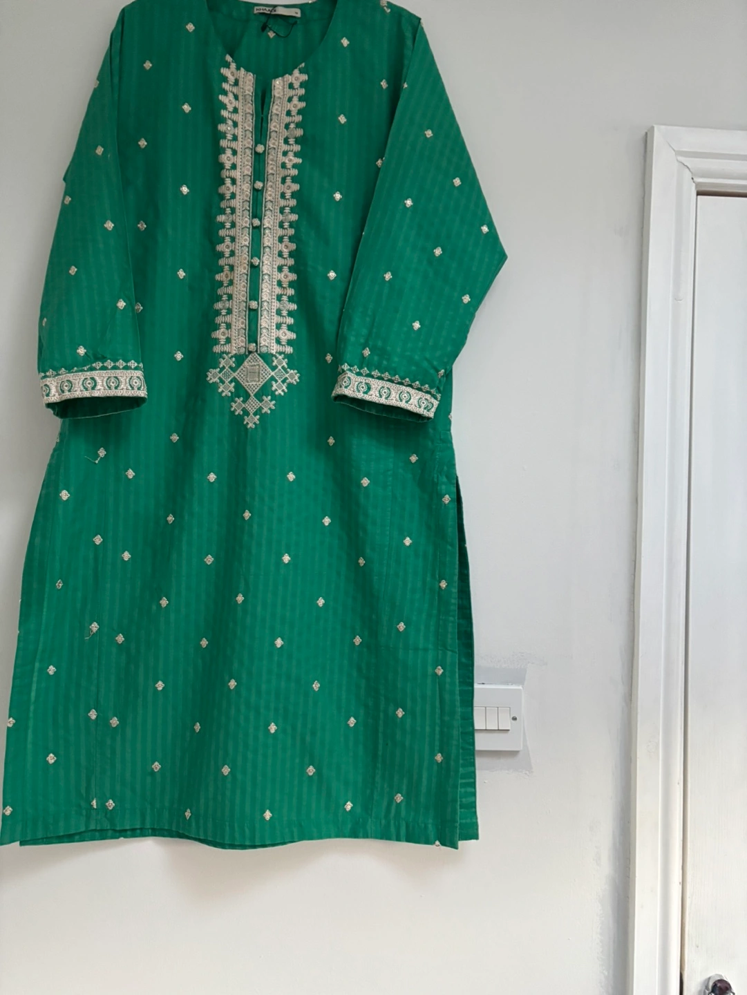 1 reviewA lovely green kurti with embroidery detailing. Perfect for everyday wear or special occasions. It's in great condition and ready for a new home!