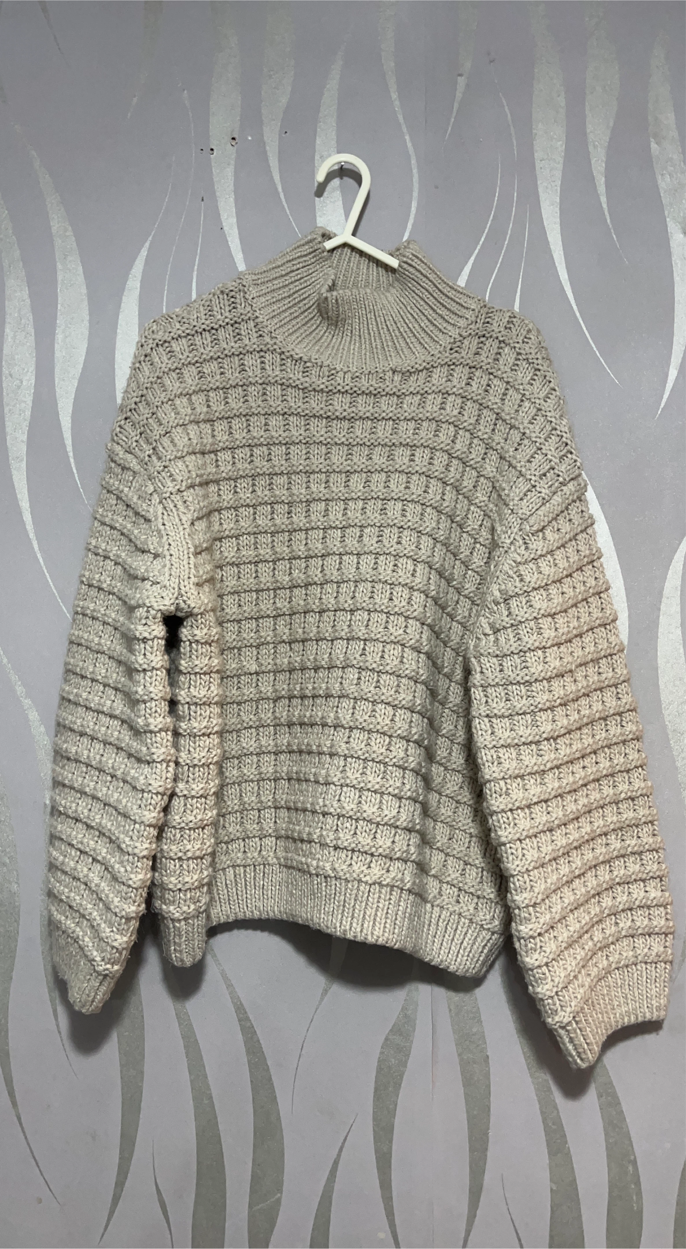 A lovely beige knit jumper from H&M, perfect for layering! It's a size M and in great condition. The material is soft and cosy, ideal for cooler days.