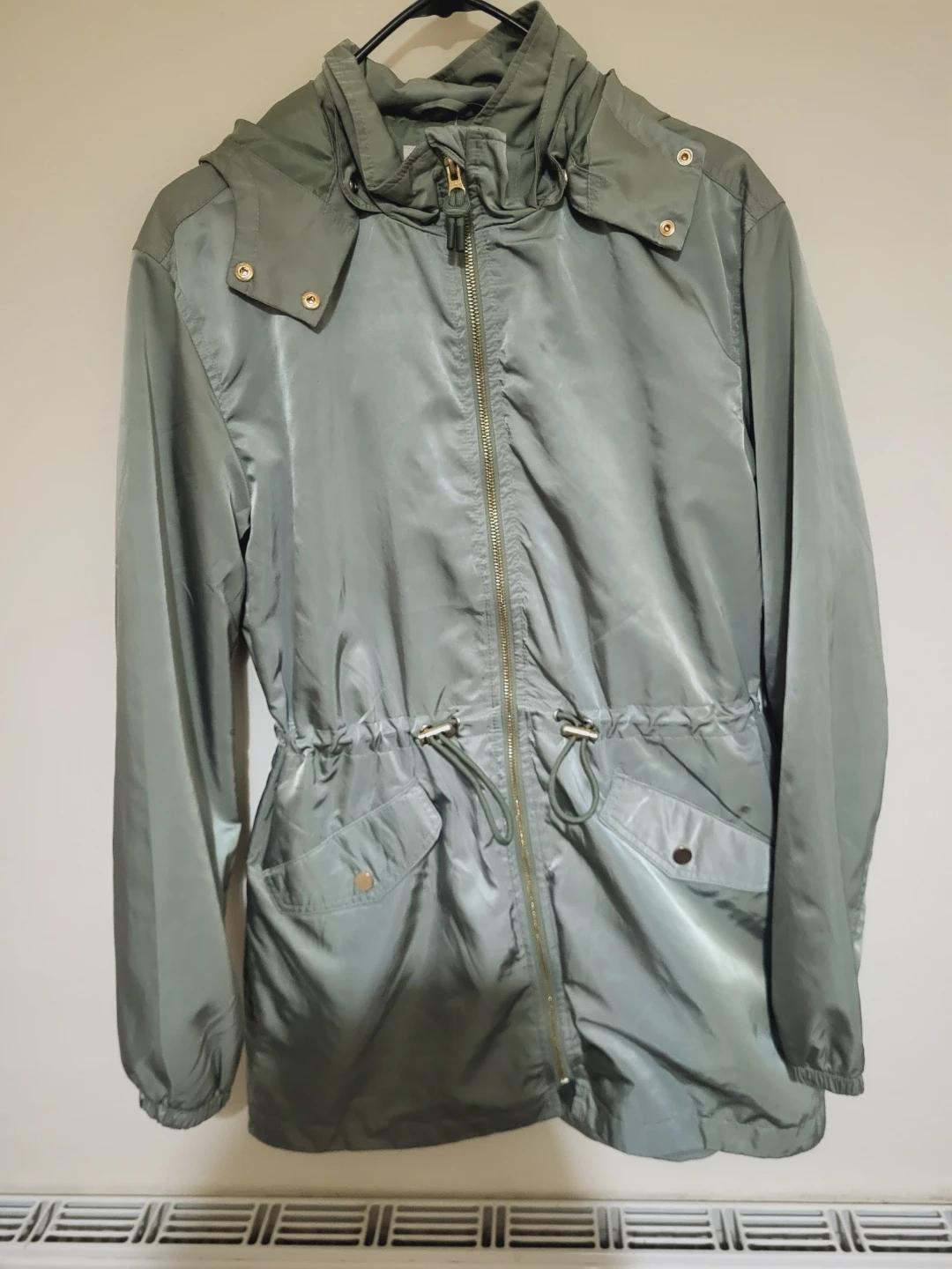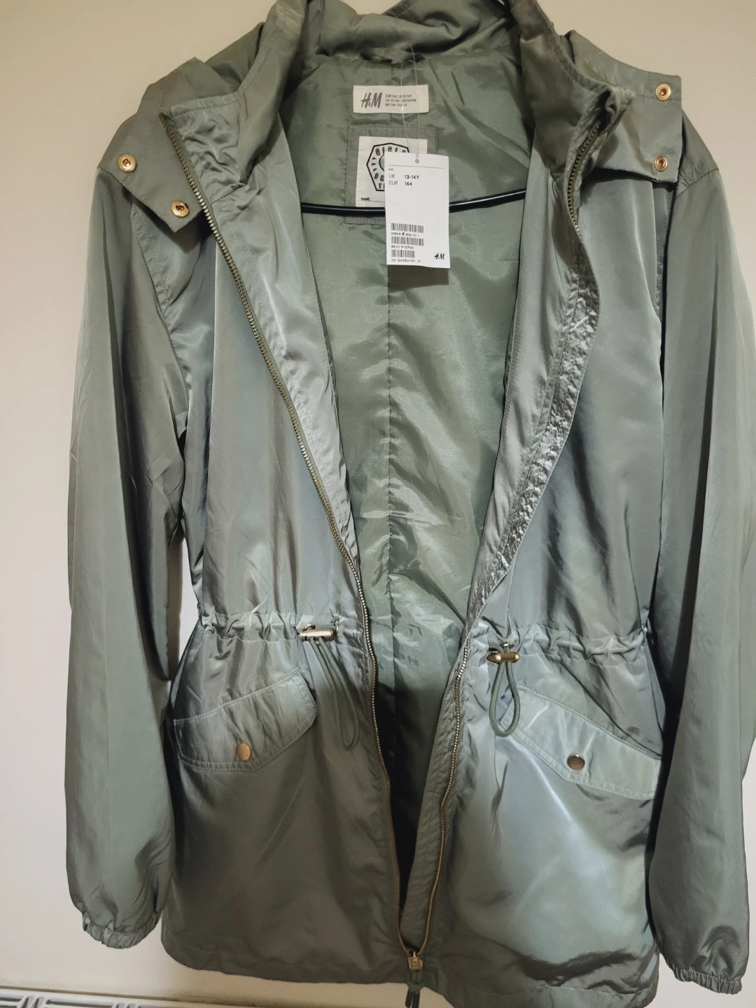 0 reviewsHere's a lovely green lightweight hooded jacket from H&M. It's perfect for layering and keeping you dry on those drizzly days. The jacket features a drawstring waist for a flattering fit and handy pockets. NEW with tag. Collection only please.