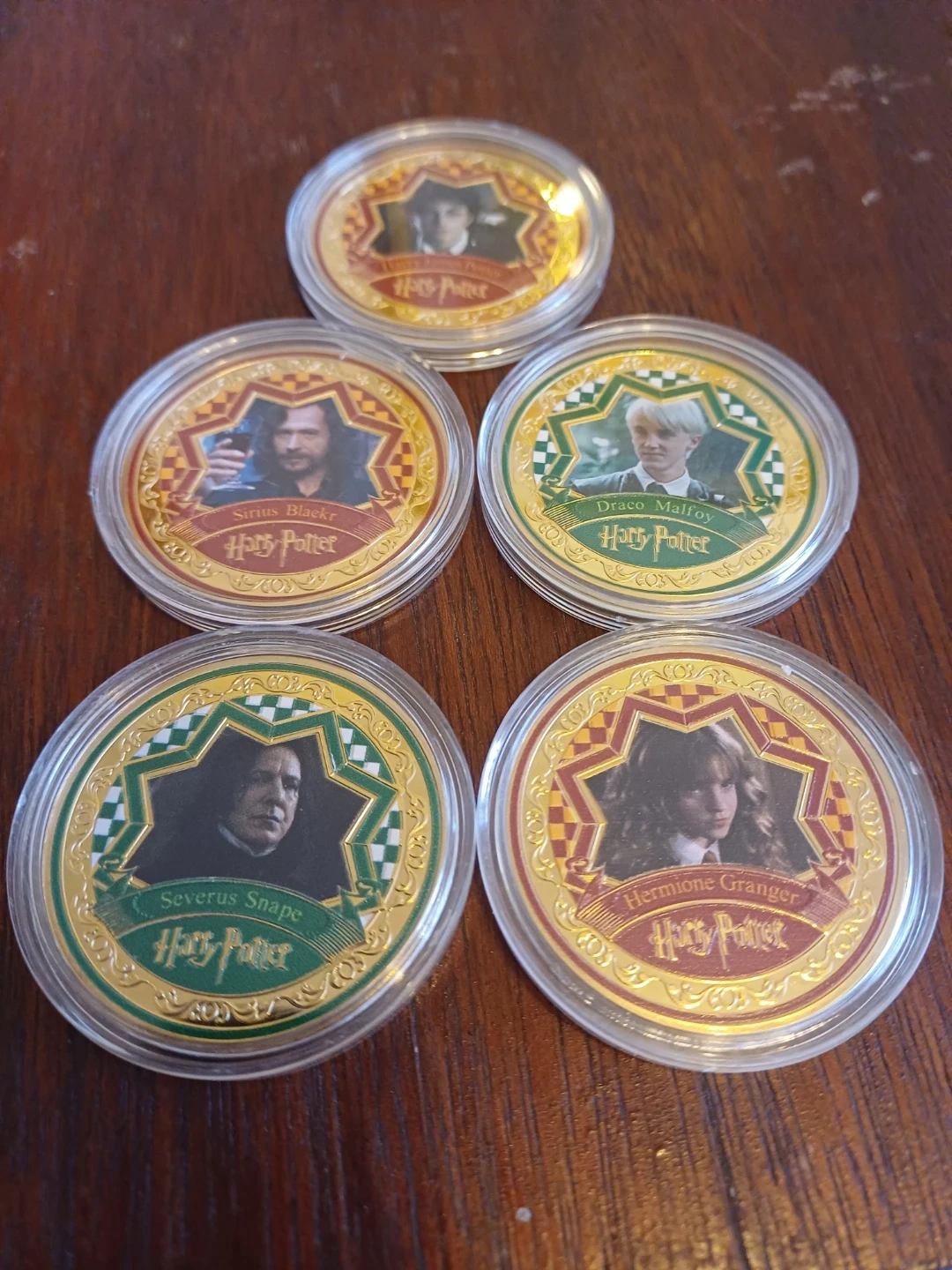 243 reviewsSelling a set of five Harry Potter character coins. The set includes Severus Snape, Sirius Black, Draco Malfoy, and Hermione Granger. They're and would make a great addition to any Harry Potter collection great Xmas gift 🎁