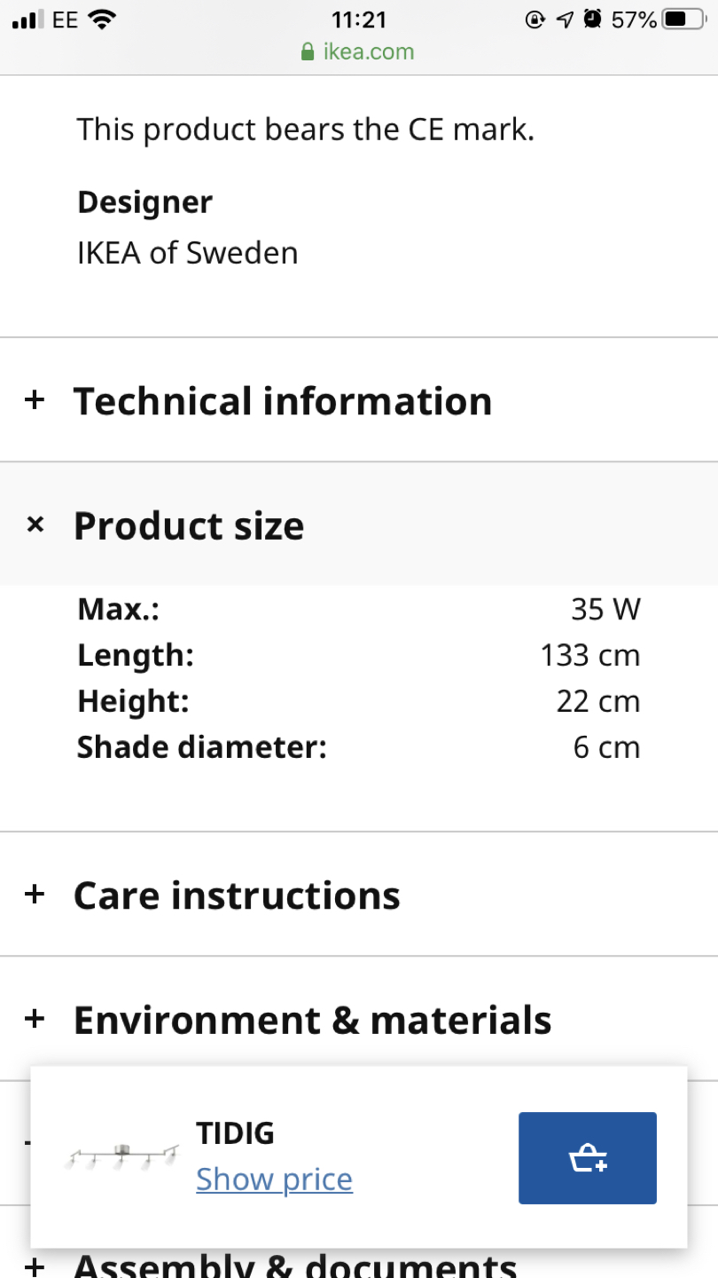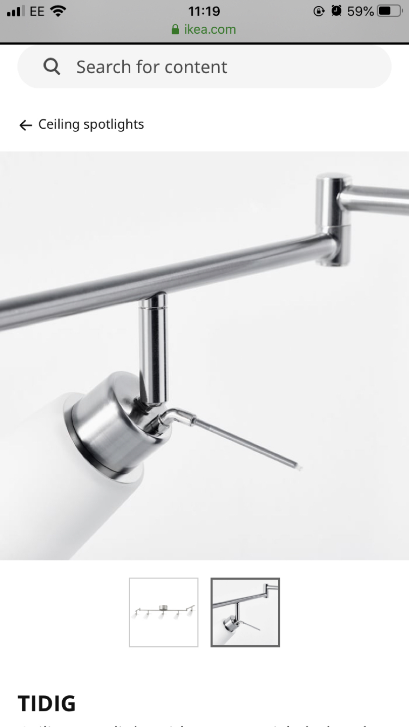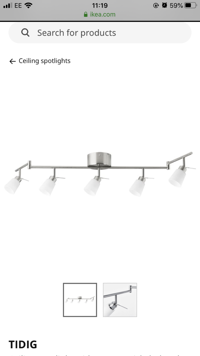 Nearly new Ikea spot light. Nice and stylish. You can easily direct the light where you want it because the spots are adjustable. Energy efficiency A++.