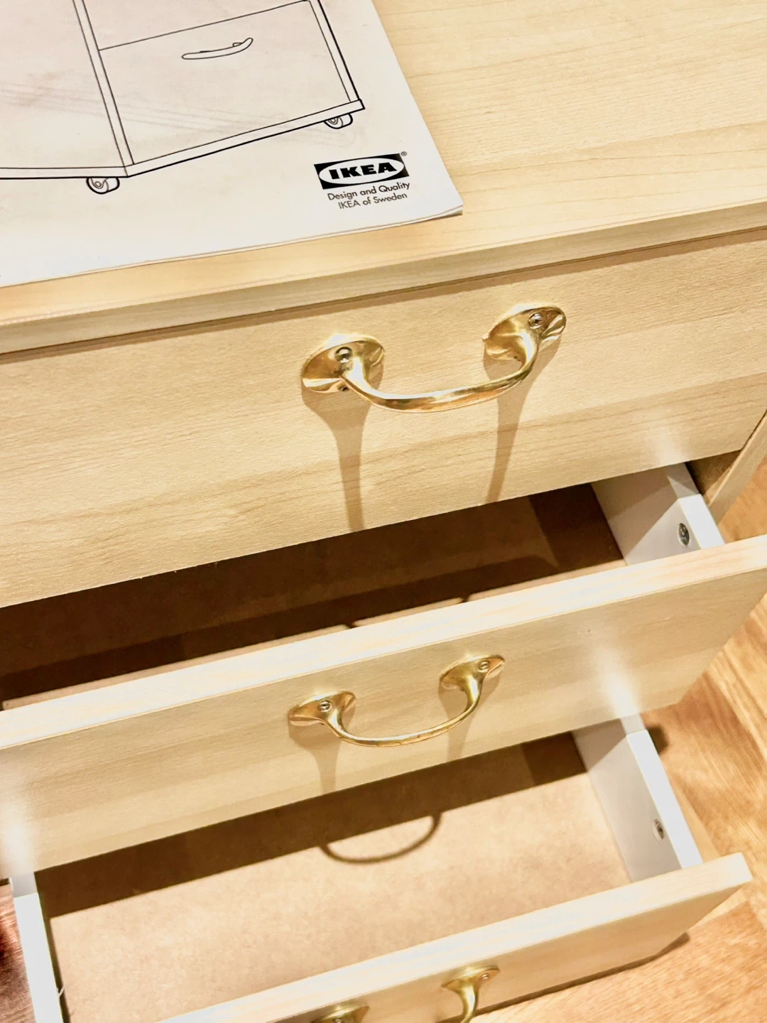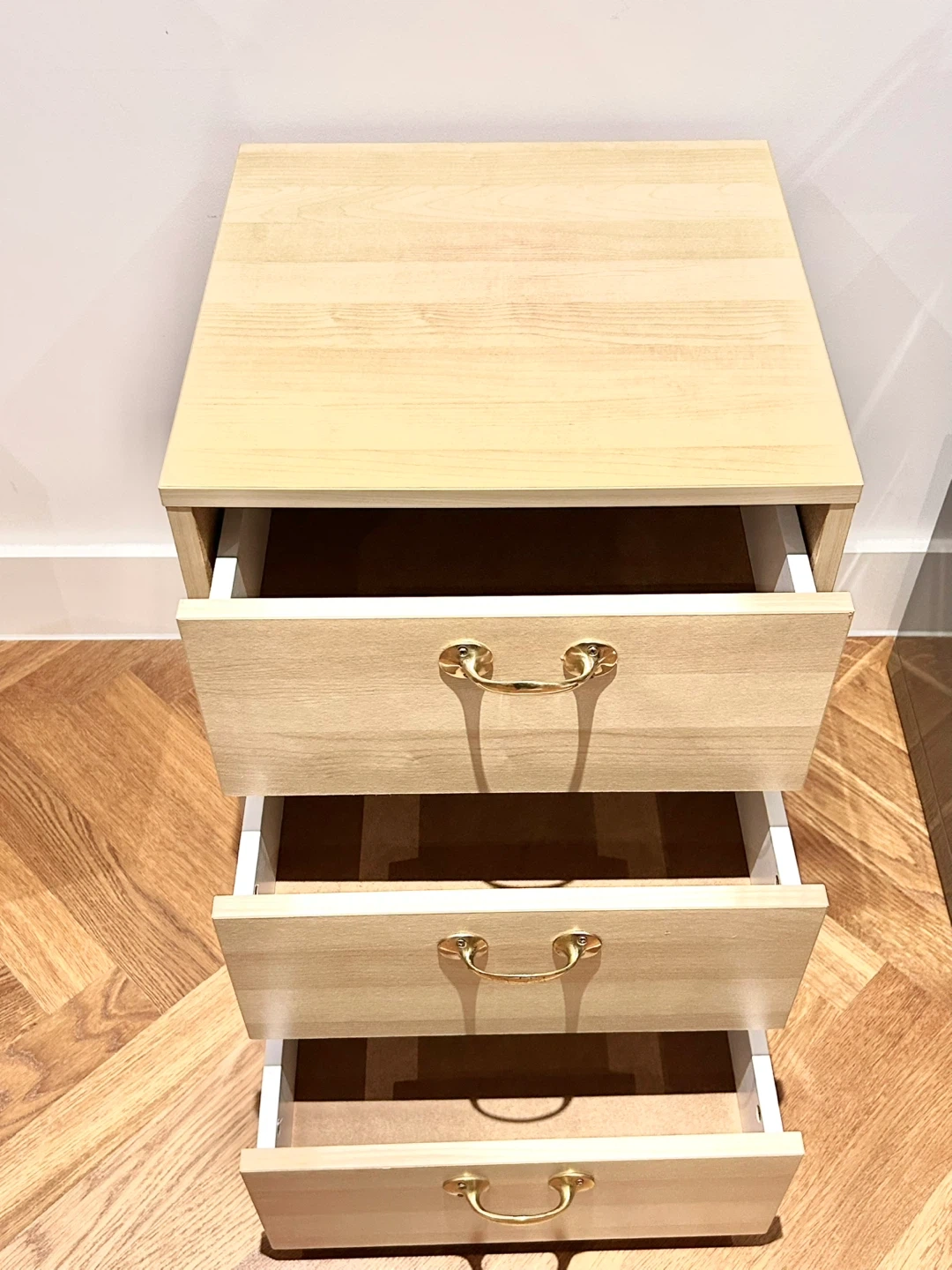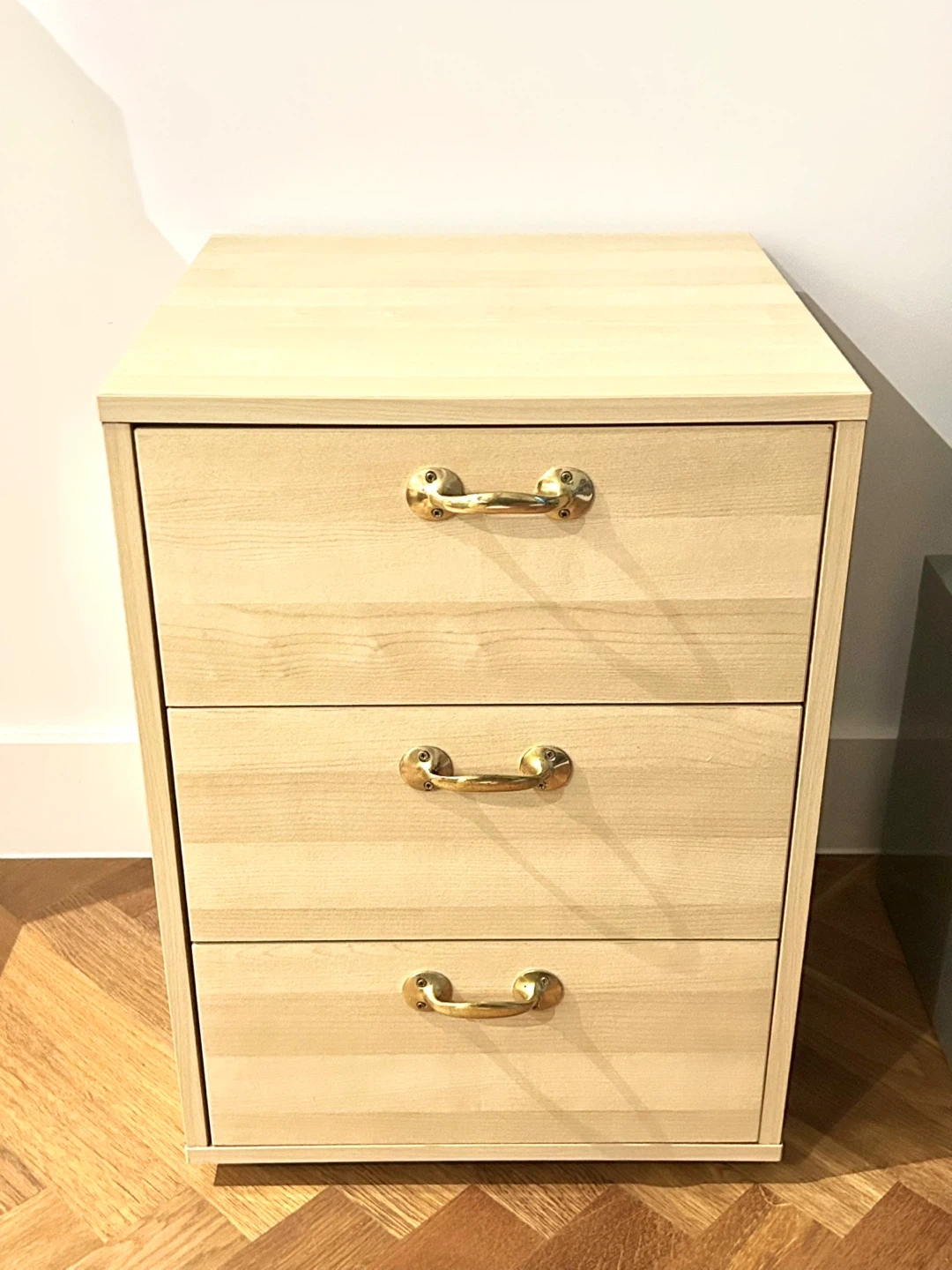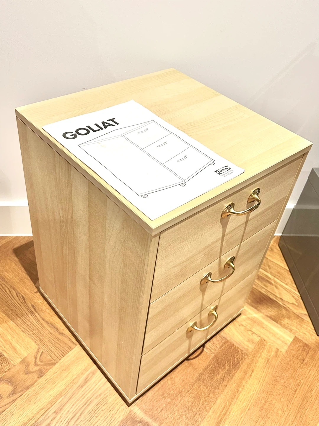 0 reviewsCollection only – Deansgate, Manchester Same day collection available. IKEA GOLIAT 3-drawer cabinet in a warm light-oak finish with elegant gold handles. This model is no longer available at IKEA, so it’s a great find for anyone who loves a nice unique vintage style. Selling due to unexpected moving. • Solid and sturdy, drawers slide smoothly • Neutral colour suits any interior style • Perfect for clothes, documents, or accessories Overall in very good condition with only minor signs of gentle use. Thanks for looking!