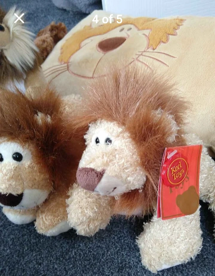 21 reviewsSelling a bundle of Keel Toys and other brands lion plushies. Includes a large lion, two smaller lions, a lion cushion, and a mini lion keyring. All in good condition and ready for a new home! only used for display