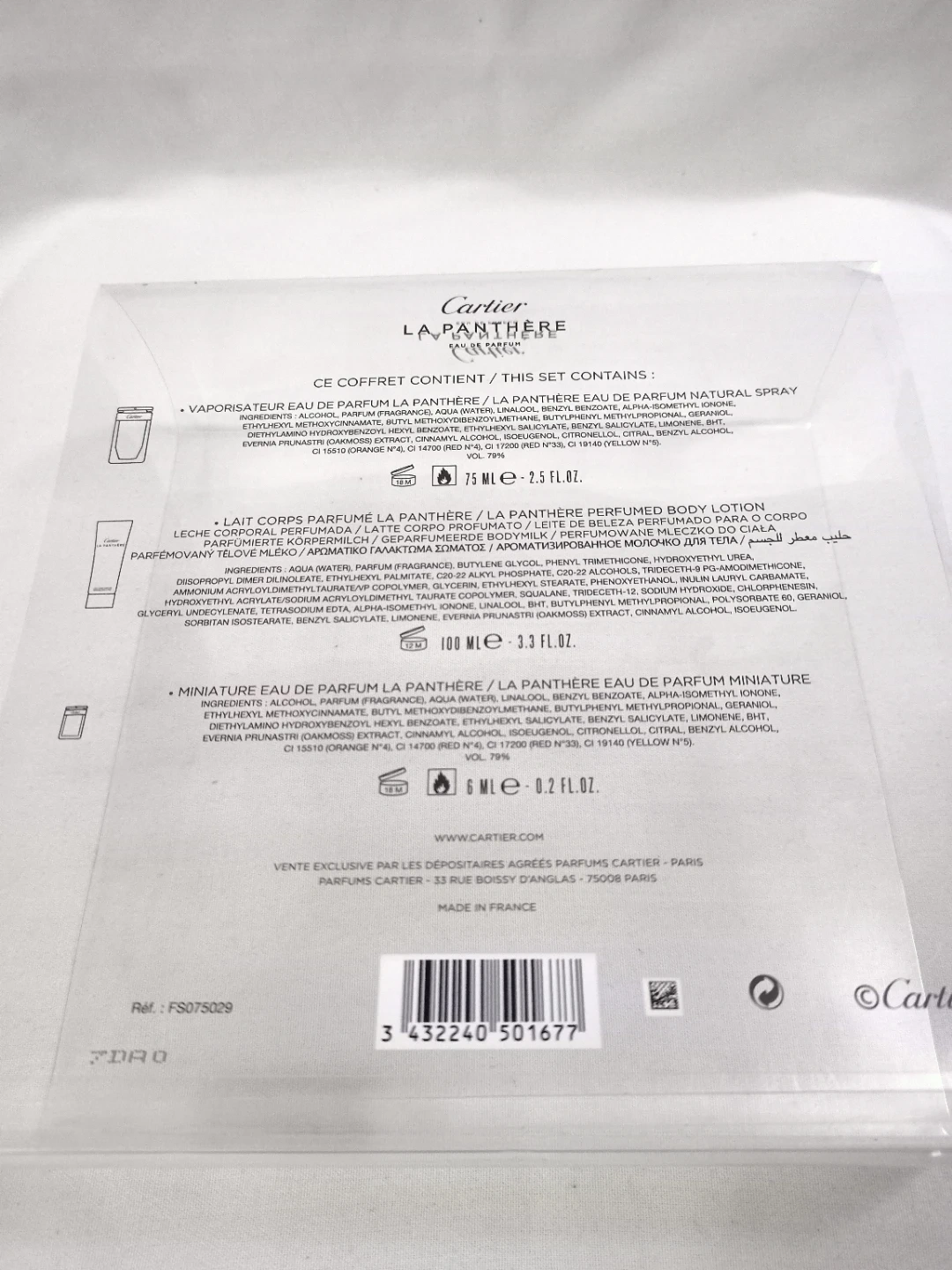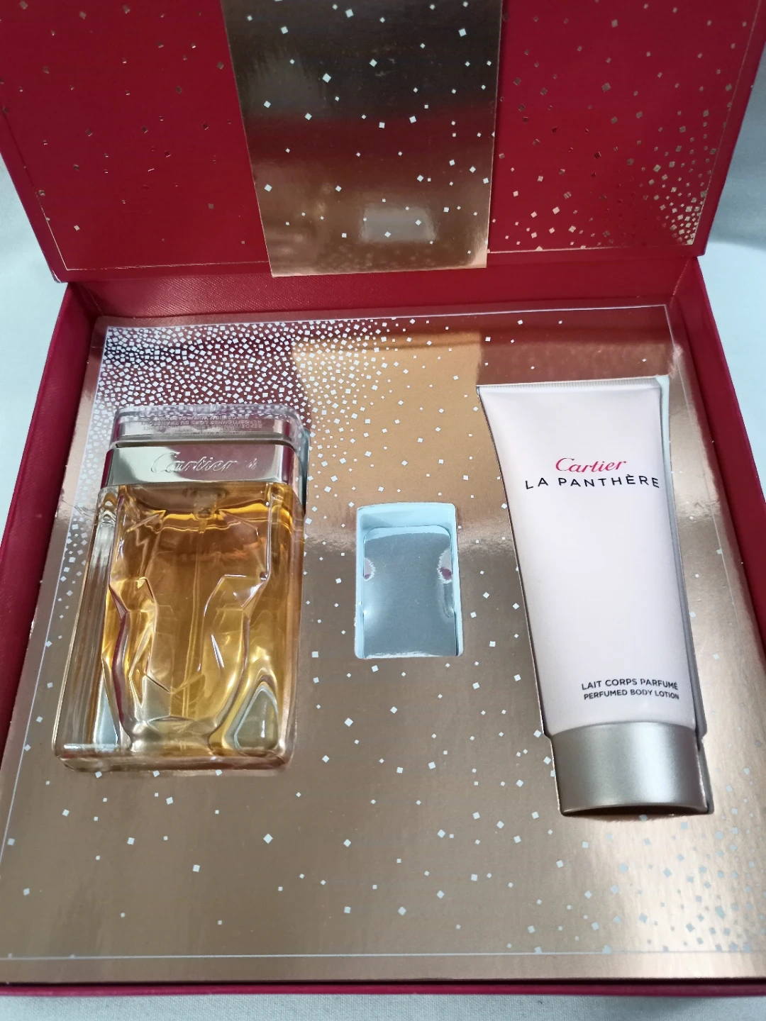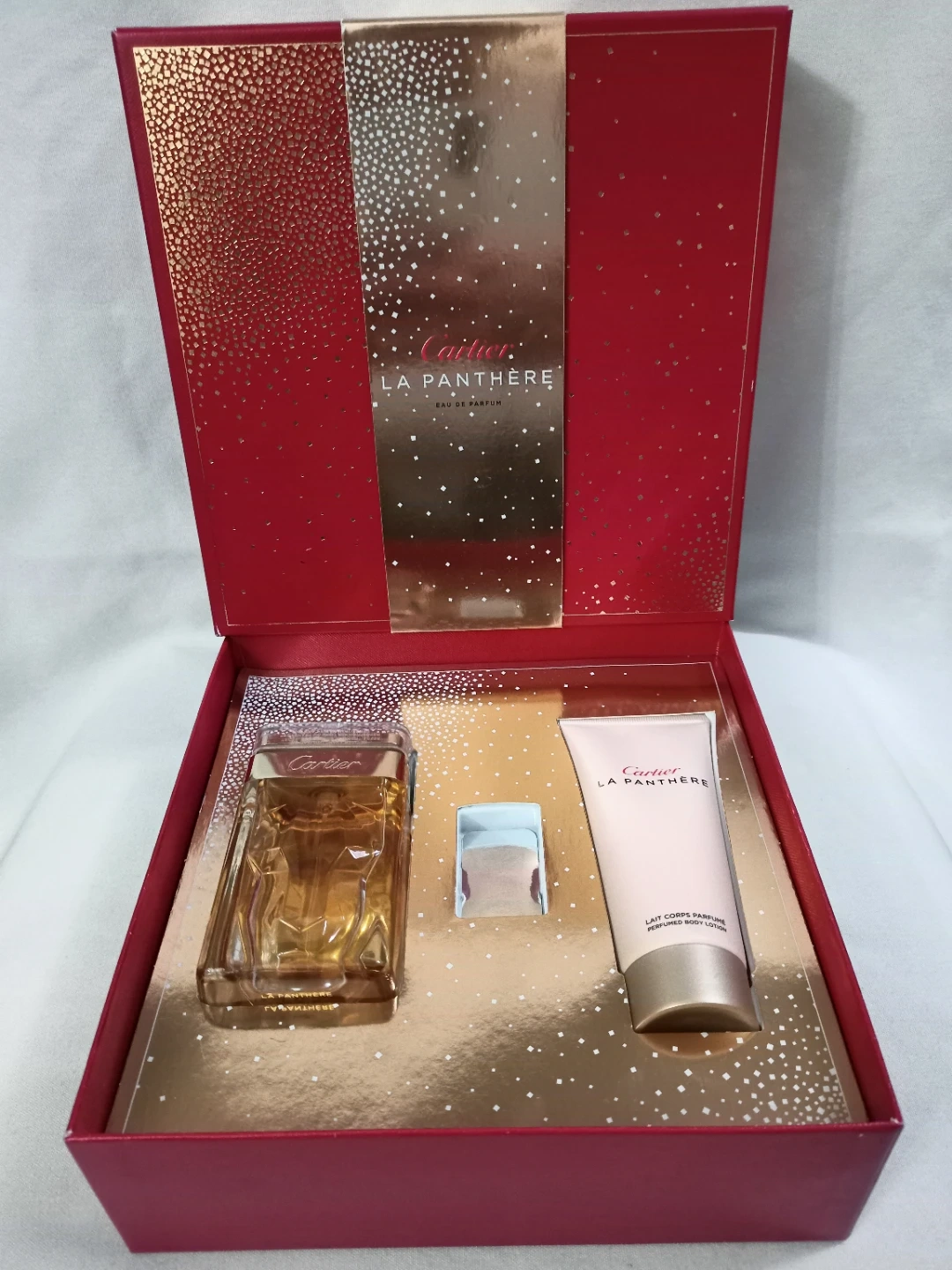 149 reviewsBEAUTIFUL CARTIER LA PANTHERE EAU DE PARFUM BOX SET EAU DE PARFUM 75ML(USED A FEW TIMES),BODY LOTION 100ML, MINIATURE HAS BEEN REMOVED.