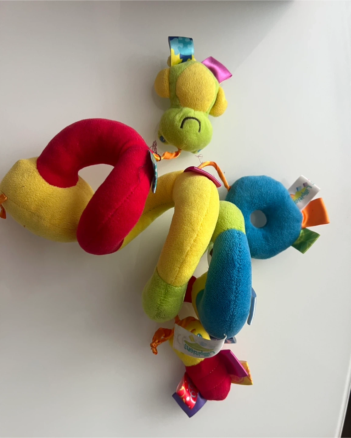 0 reviewsHere's a Lamaze Freddie The Firefly pram toy! It's a colourful and engaging toy perfect for keeping little ones entertained on the go. It easily attaches to prams and pushchairs, and has lots of different textures and sounds to explore, so it's great for sensory development