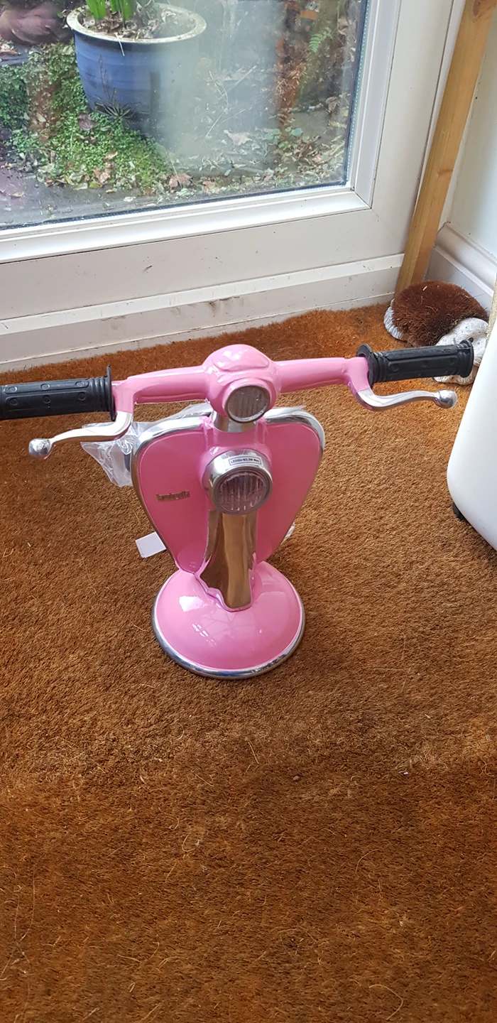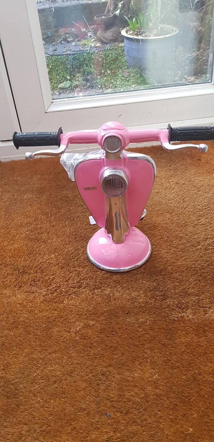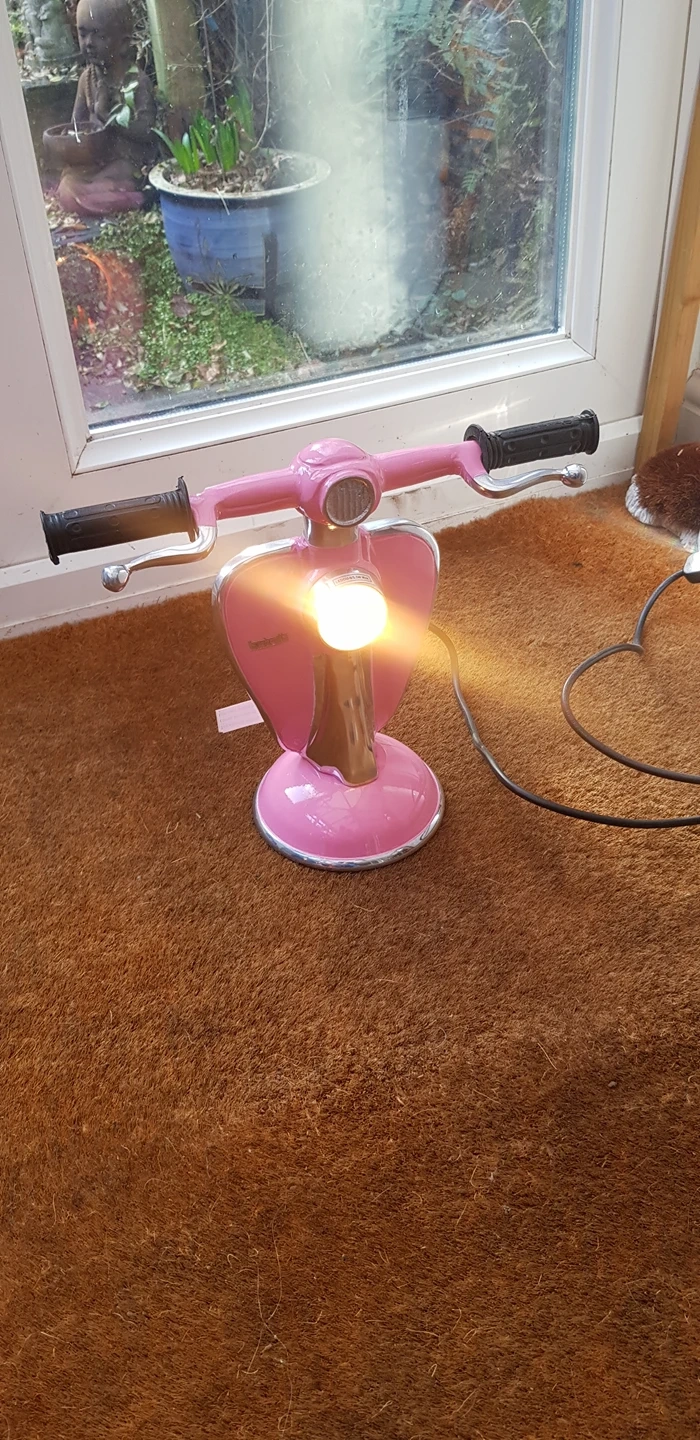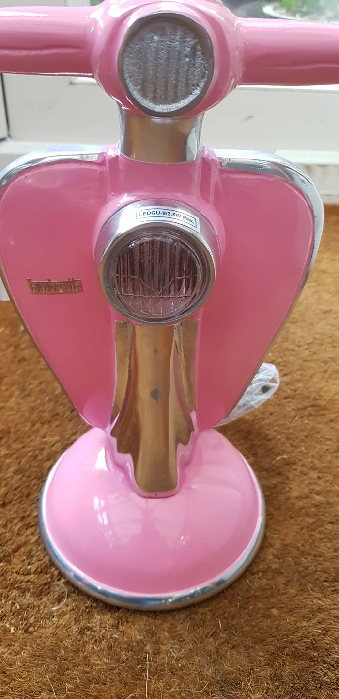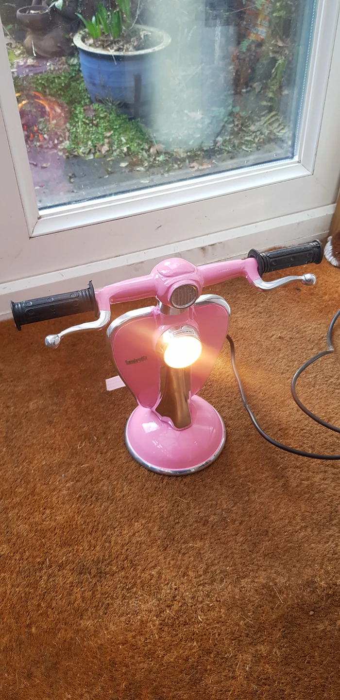 0 reviewsLambretta Scooter Table/Desk Lamp - New (PINK) Brand New novelty lamp which would look good in any room! This Uniquely Handcrafted Table/Desk lamp is made in pink solid gloss enamel. Measures:- 27.5cm high 33.5cm wide at handlebars 13.5cm diameter at base 2 metre + Electric Cable with on/off Switch Happy to post for postage costs.