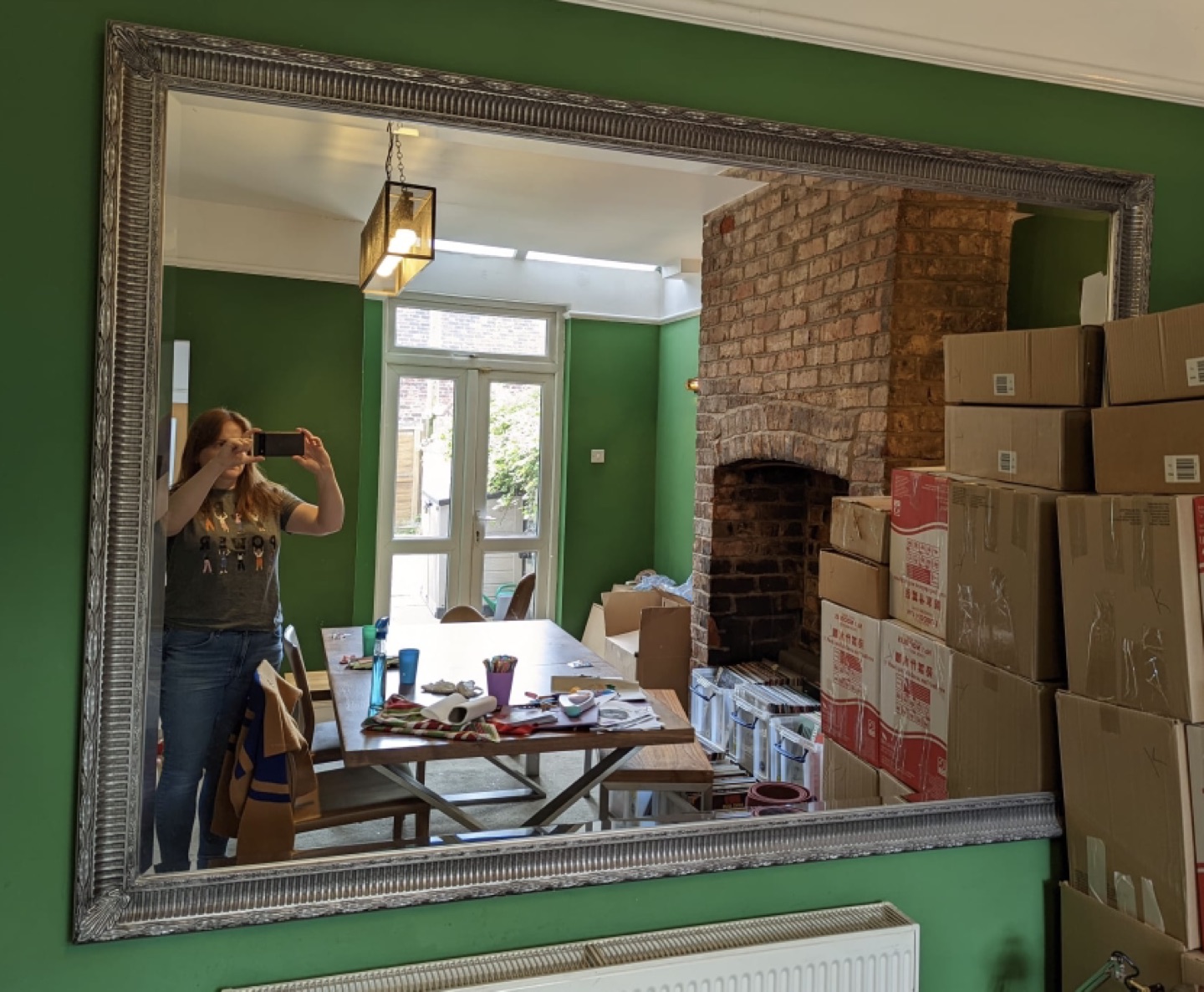 Pinewood Desk with Green Leather Top