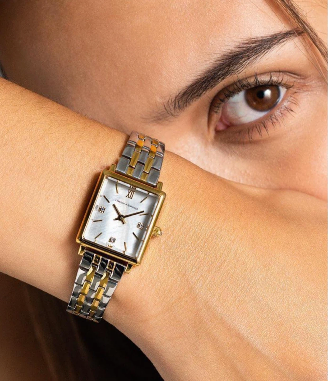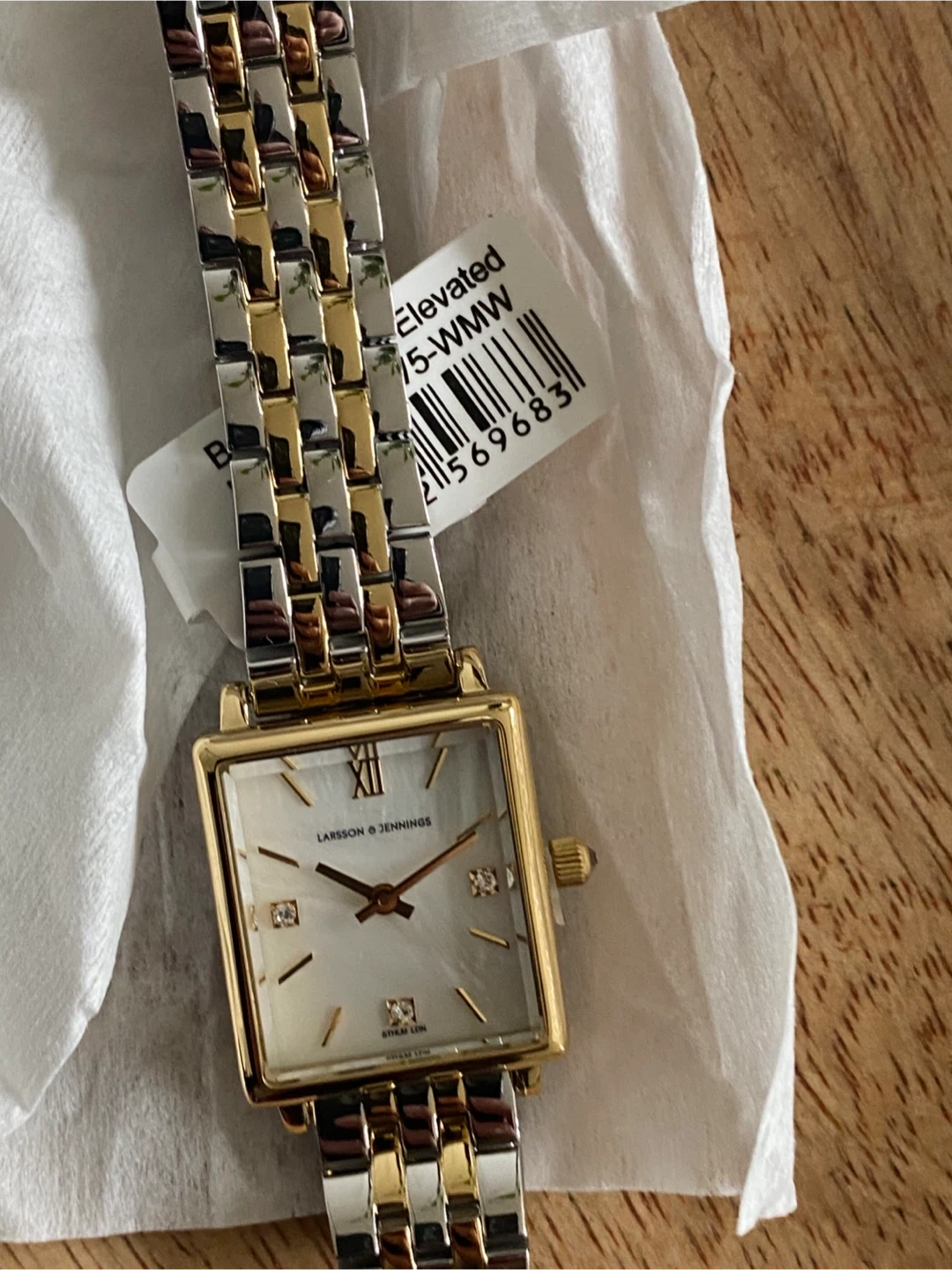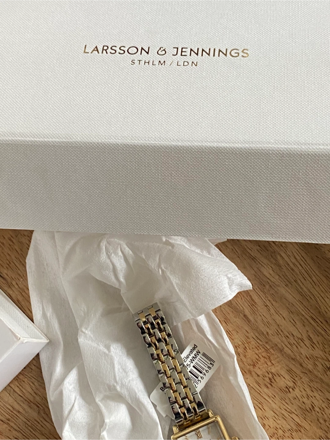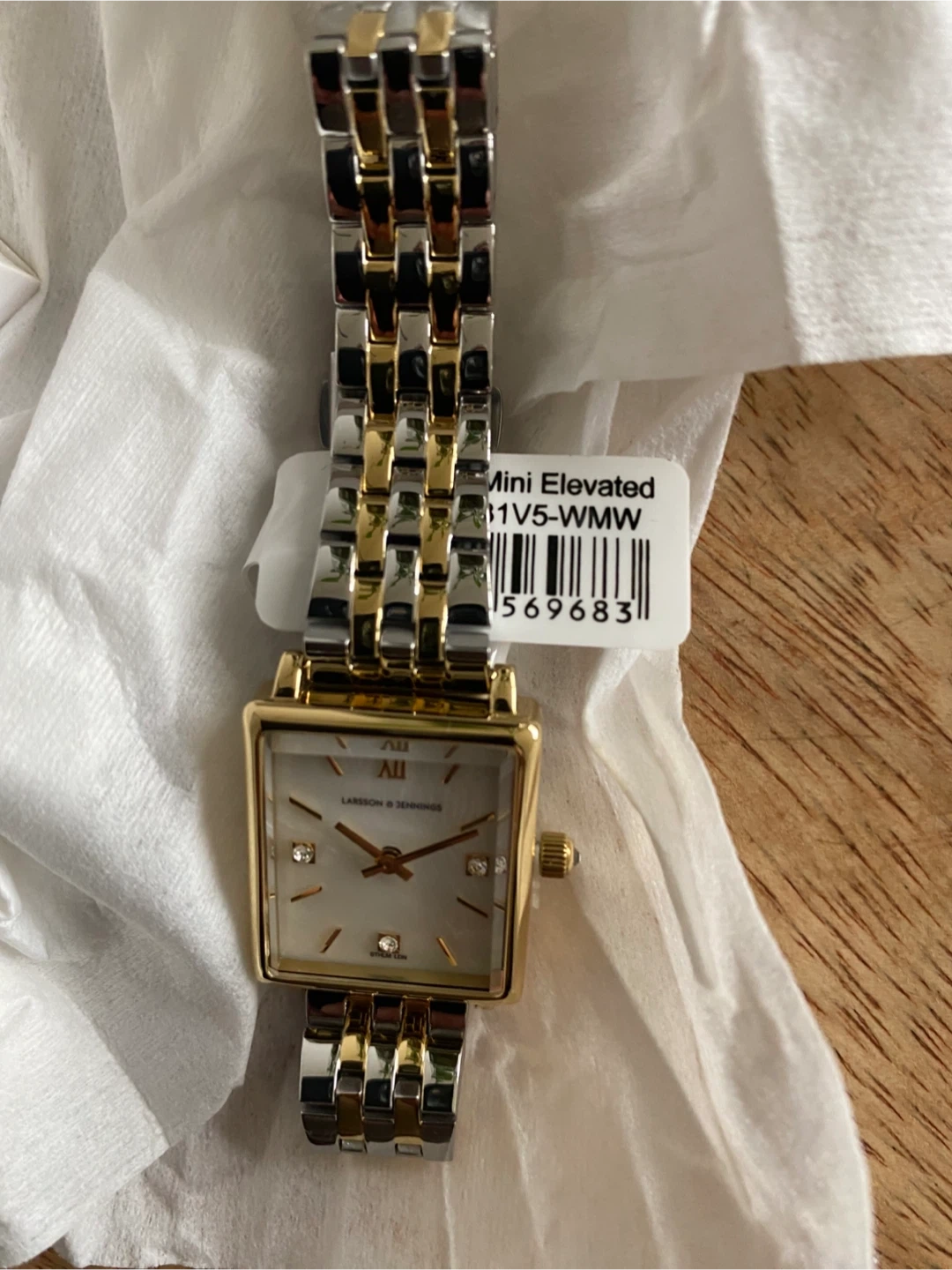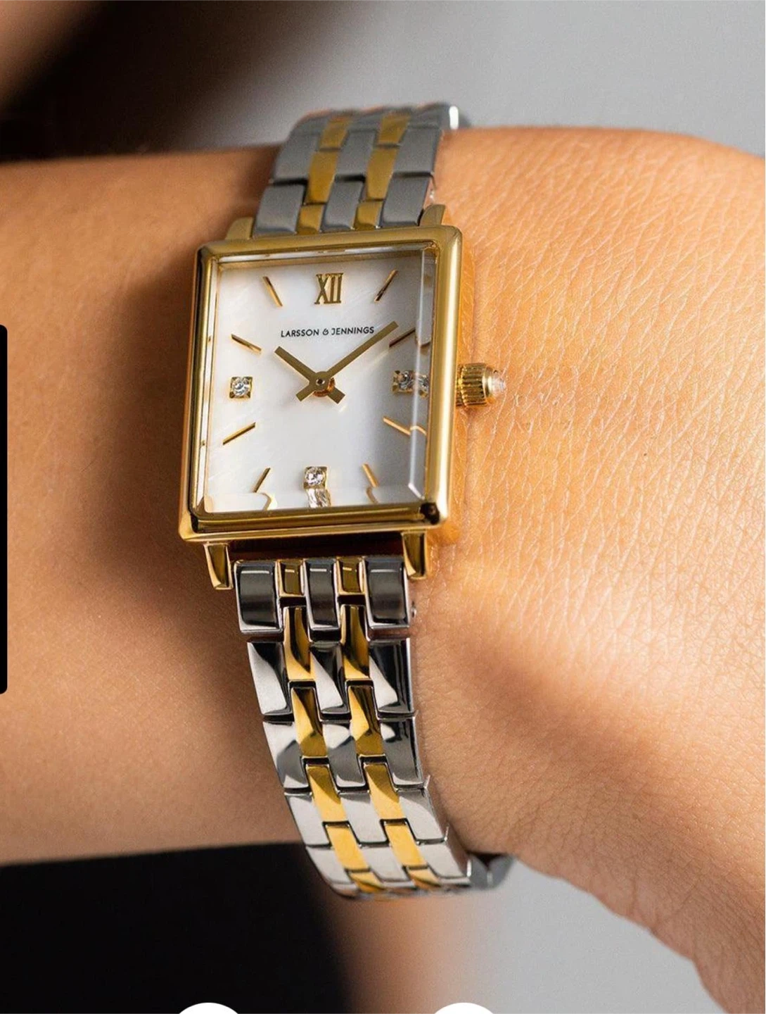 43 reviewsSelling a brand new Larsson & Jennings Mini Elevated watch! It's never been worn and comes in its original box. This stylish timepiece features a gold and silver bracelet and a square face. Perfect for adding a touch of elegance to any outfit